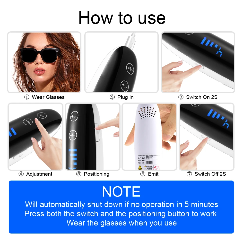3. Двухкнопочная активированная защита: позиционирование, есть кнопка, которая может предложить светильник, чтобы определить место, которое вы хотите отрегулировать, в случае, если светильник находится не в том месте, светильник не вредит коже. Нажмите на переключатель и кнопку позиционирования для работы.