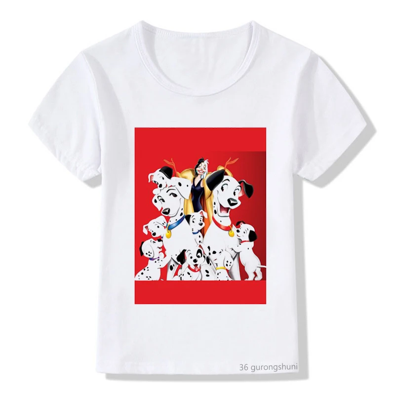 2021 Kawaii Cruella De Vil Dogs графическая футболка, детская одежд...