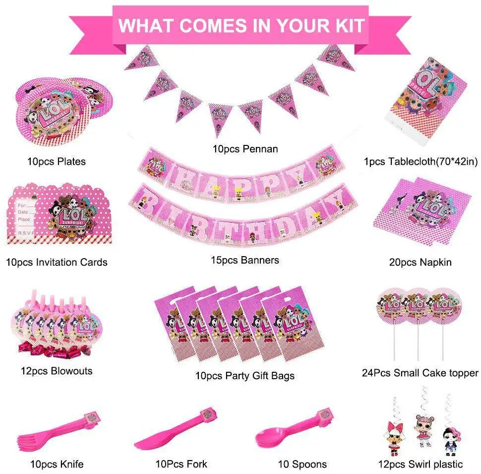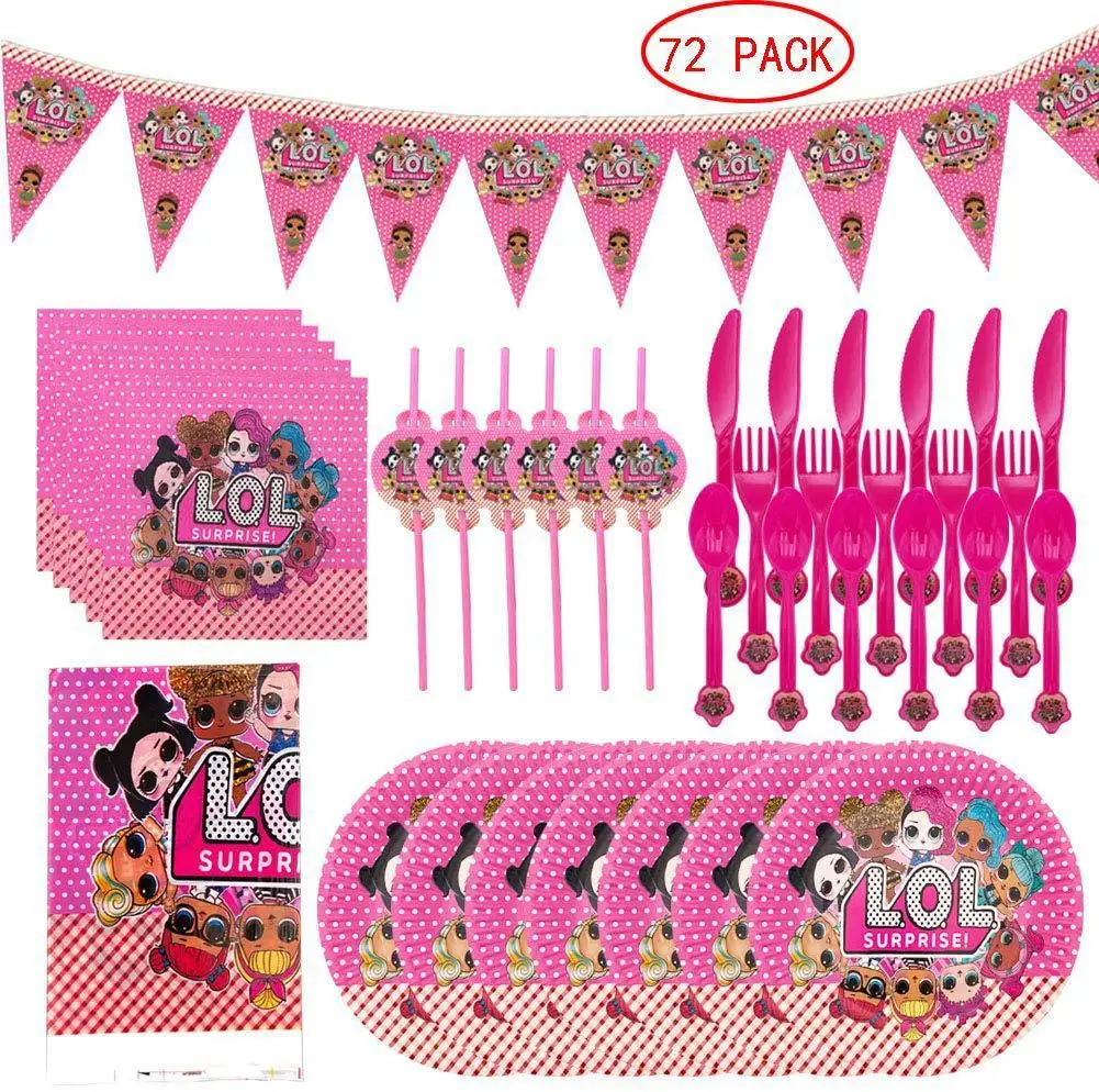 Куклы LOL SURPRISE, украшение для вечевечерние, дня рождения, маска, тарелка для кексов, нож, вилка, динамик, скатерть, игрушка