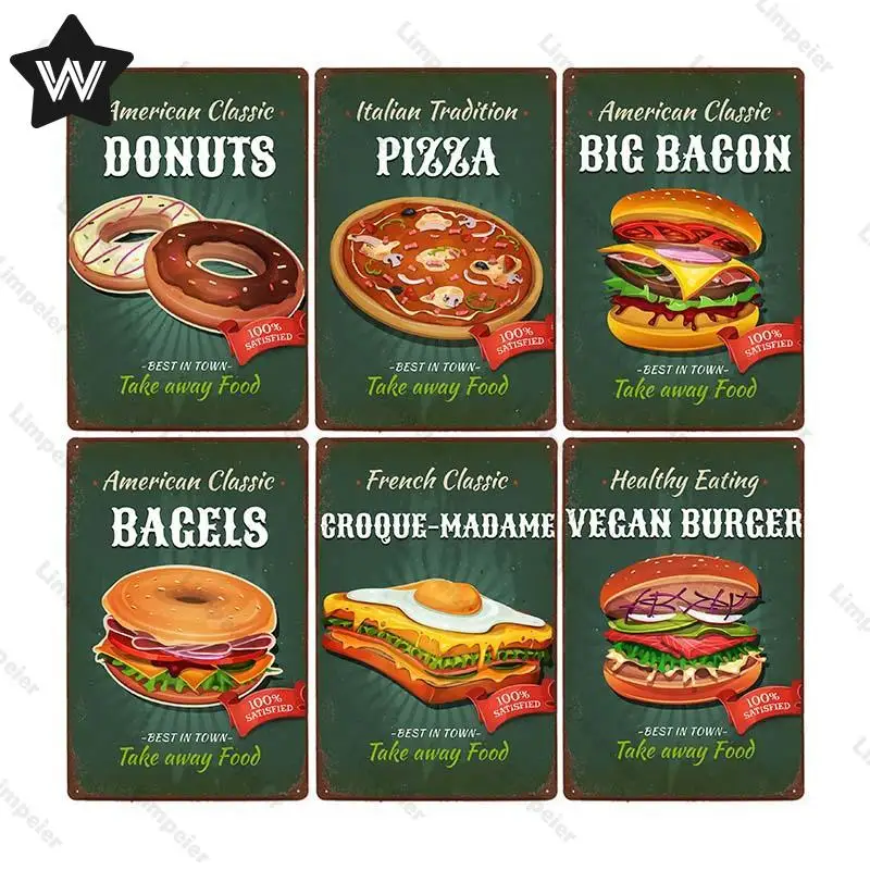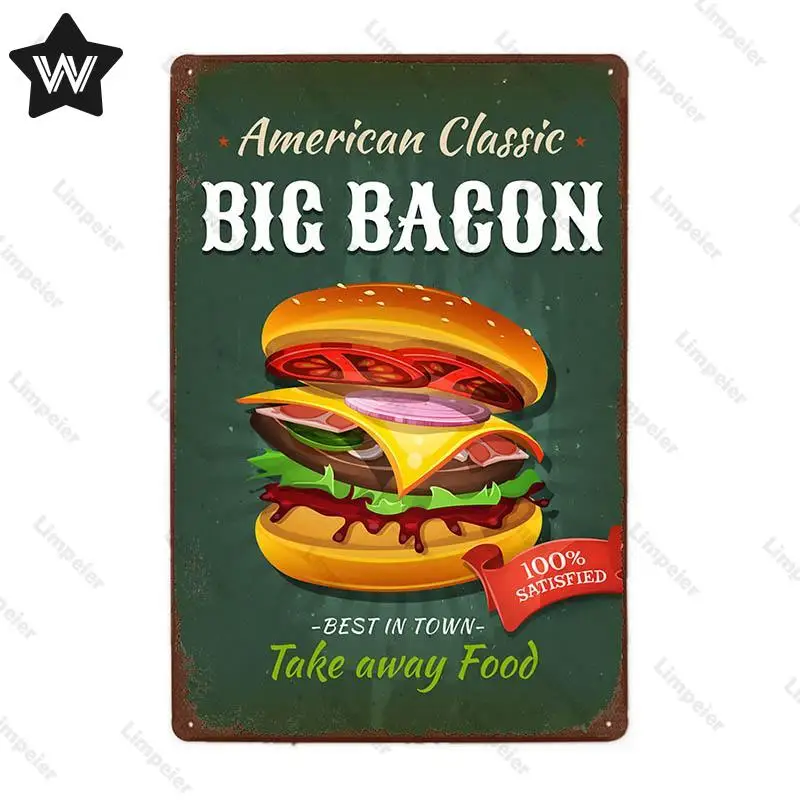 Винтажная пластина в виде гамбургера, металлический жестяной знак, ...