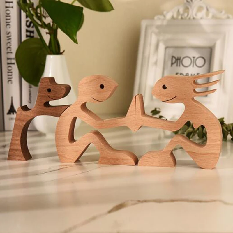 Деревянная фигурка для домашнего питомца, настольное украшение для щенка, Резьбовая модель, креативное украшение для дома и офиса, скульптура для любимого питомца