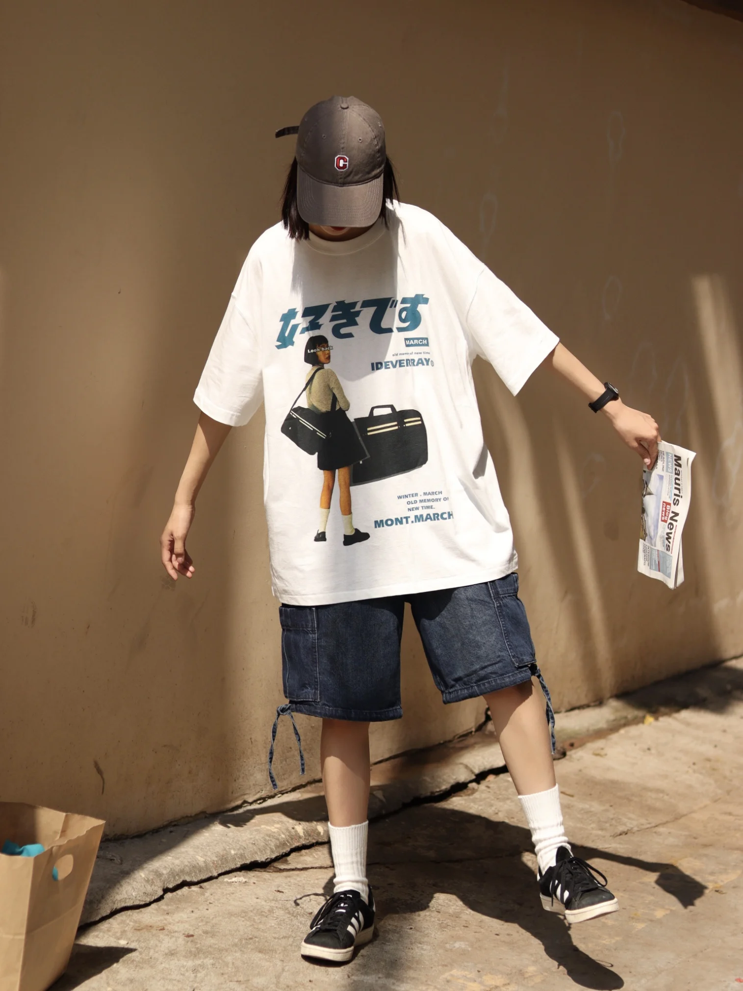 Футболка женская оверсайз в японском стиле, уличная одежда с рисунком аниме, Повседневная в стиле хип-хоп, одежда