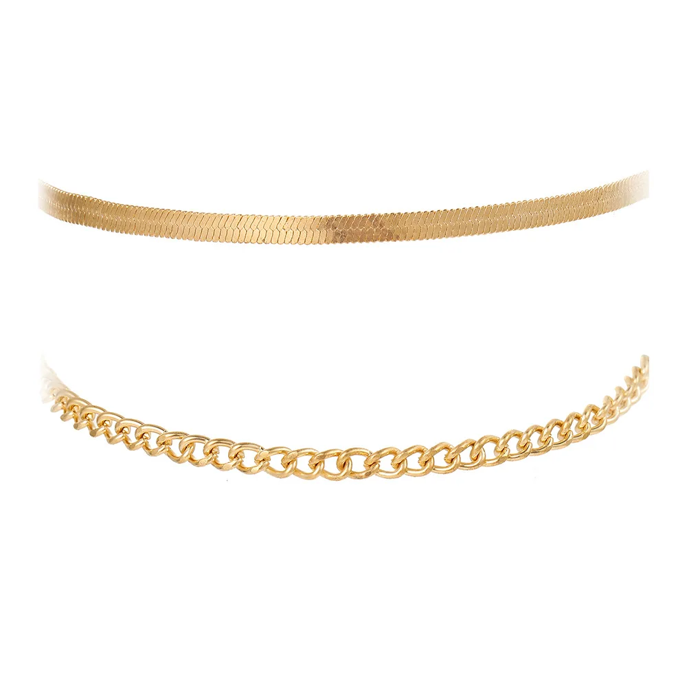 Модные Простые сплава браслет набор женские ножные браслеты из двух предметов цепочка змейкой плоского плетения комбинации украшение для ног