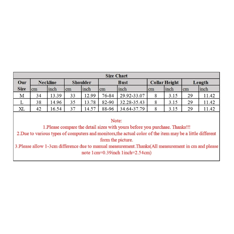 Размер: L Вырез: 38 см (14,96 дюйма) ширина плеч: 35 см (13,77 дюйма) обхват груди: 82 см-90 см (32,28 дюйма-35,43 дюйма) Высота воротника: 8 см (3,14 дюйма) Длина: 29 см (11,41 дюйма)
