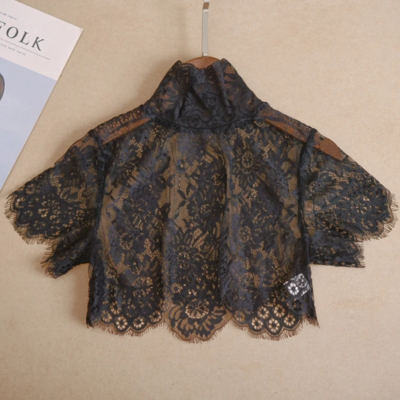 Женский съемный фальшивый воротник полурубашка блузка Милая вязаная крючком Прозрачная Кружевная Цветочная кружевная свадебное платье накидка на шею
