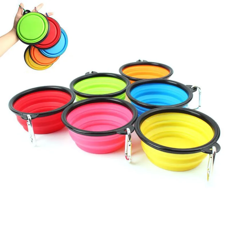 1 шт. силиконовая миска для кормления собак с карабином, складная м...