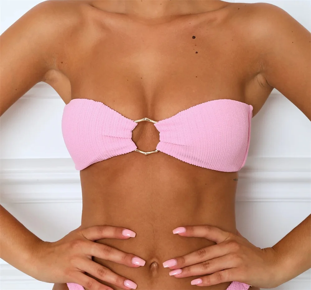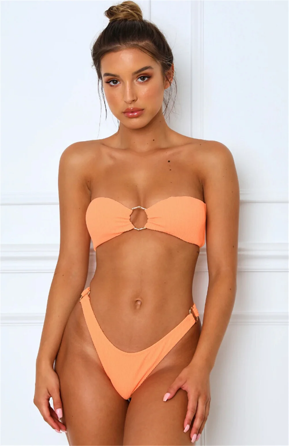 Бикини без бретелек, сексуальный женский купальник, однотонное женское бикини с низкой талией, Бразильская летняя пляжная одежда, купальный костюм
