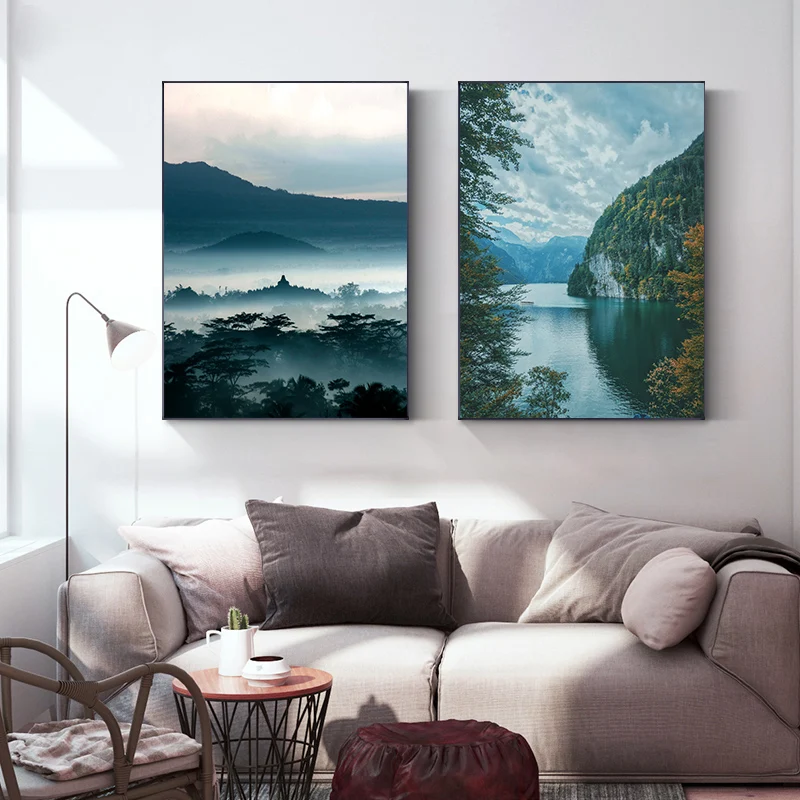 Картина с пейзажем, искусство стены, постер с изображением гор, озе...