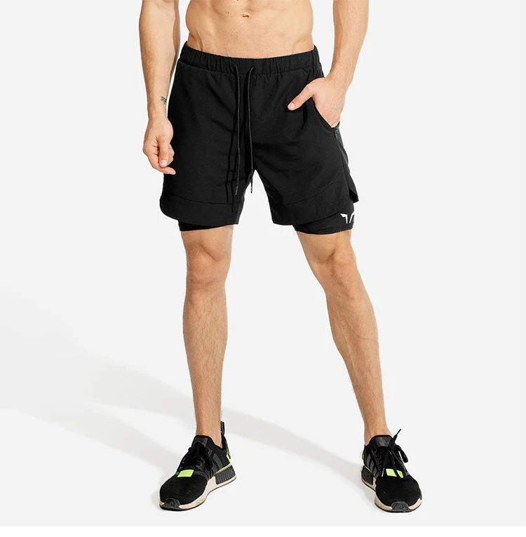 Мужские спортивные шорты 2 в 1, шорты для бега, мужские двухслойные быстросохнущие шорты для бега, фитнеса, бодибилдинга, тренажерного зала, тренировок, мужские шорты