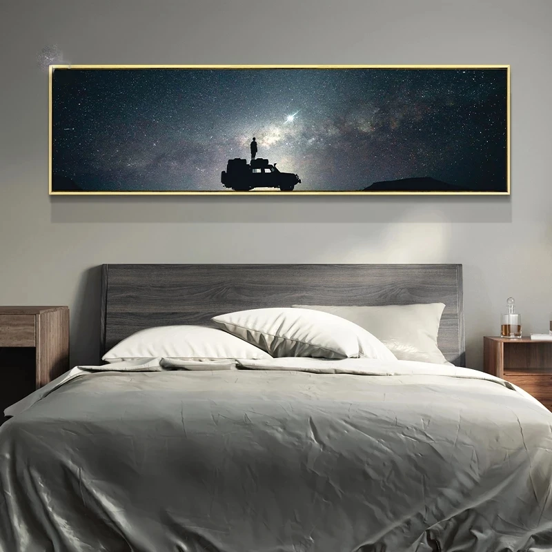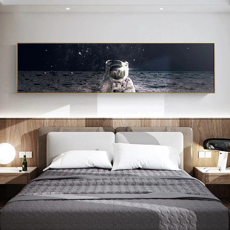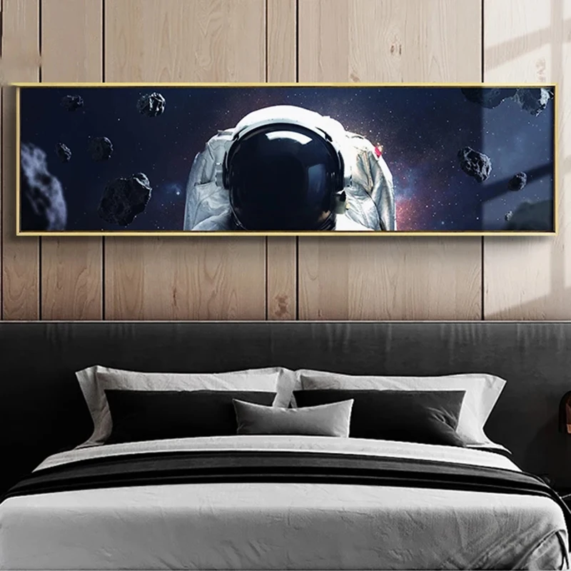 Картина на холсте с космонавтом, длинная картина в скандинавском стиле, Вселенная, космос, планета