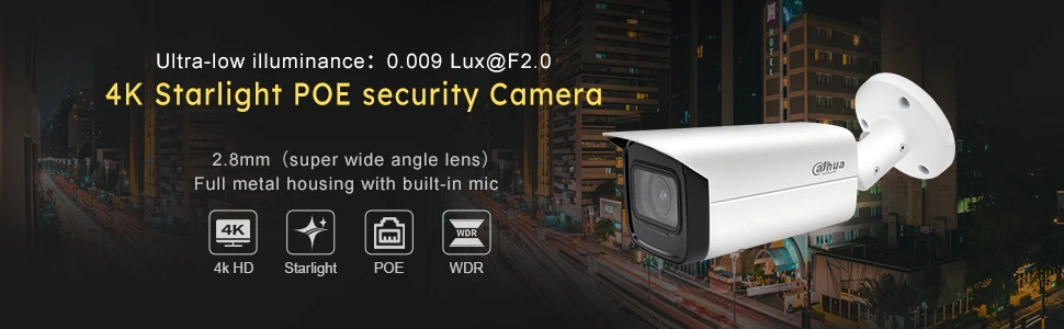 Оригинальная IP-камера Dahua, 8 Мп, 4K, система видеонаблюдения, фотокамера безопасности с 5-кратным увеличением, Starlight, POE, SD-карта, звуковая сигнализация, H.265 + 60 м, IR, IVS
