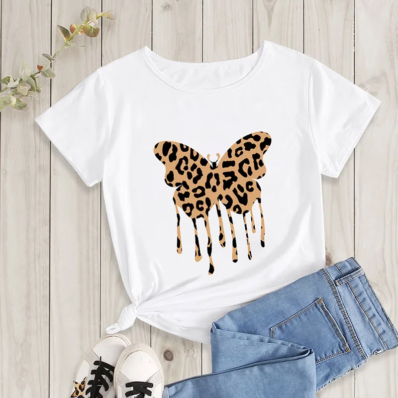 Женская футболка с леопардовым принтом, футболка в стиле ретро с принтом бабочки, лето 2021