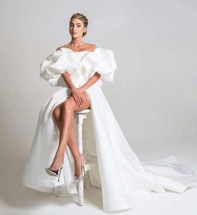 Платье женское свадебное с разрезом по бокам, со съемными рукавами-...