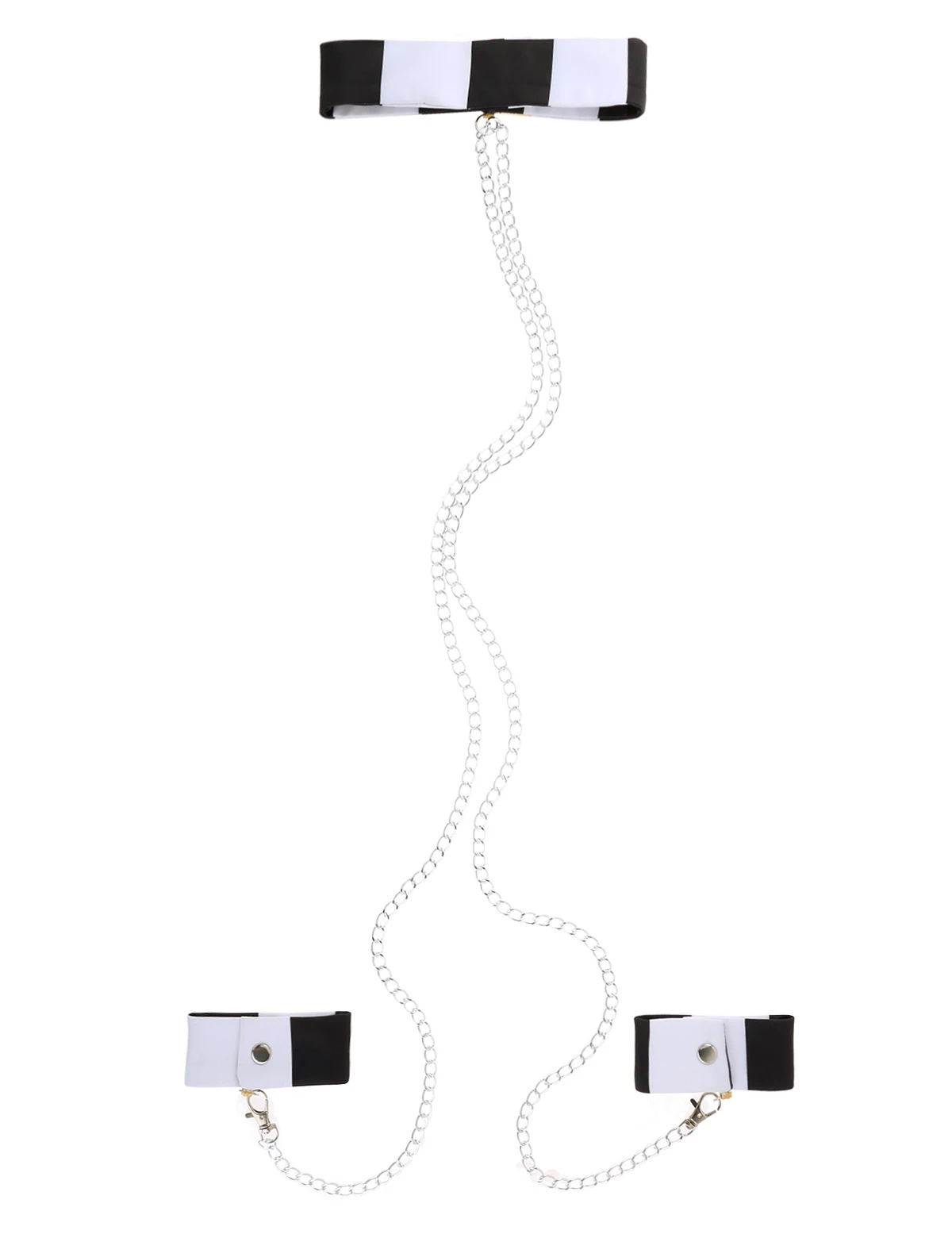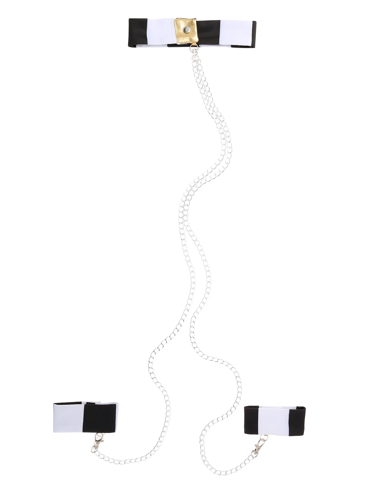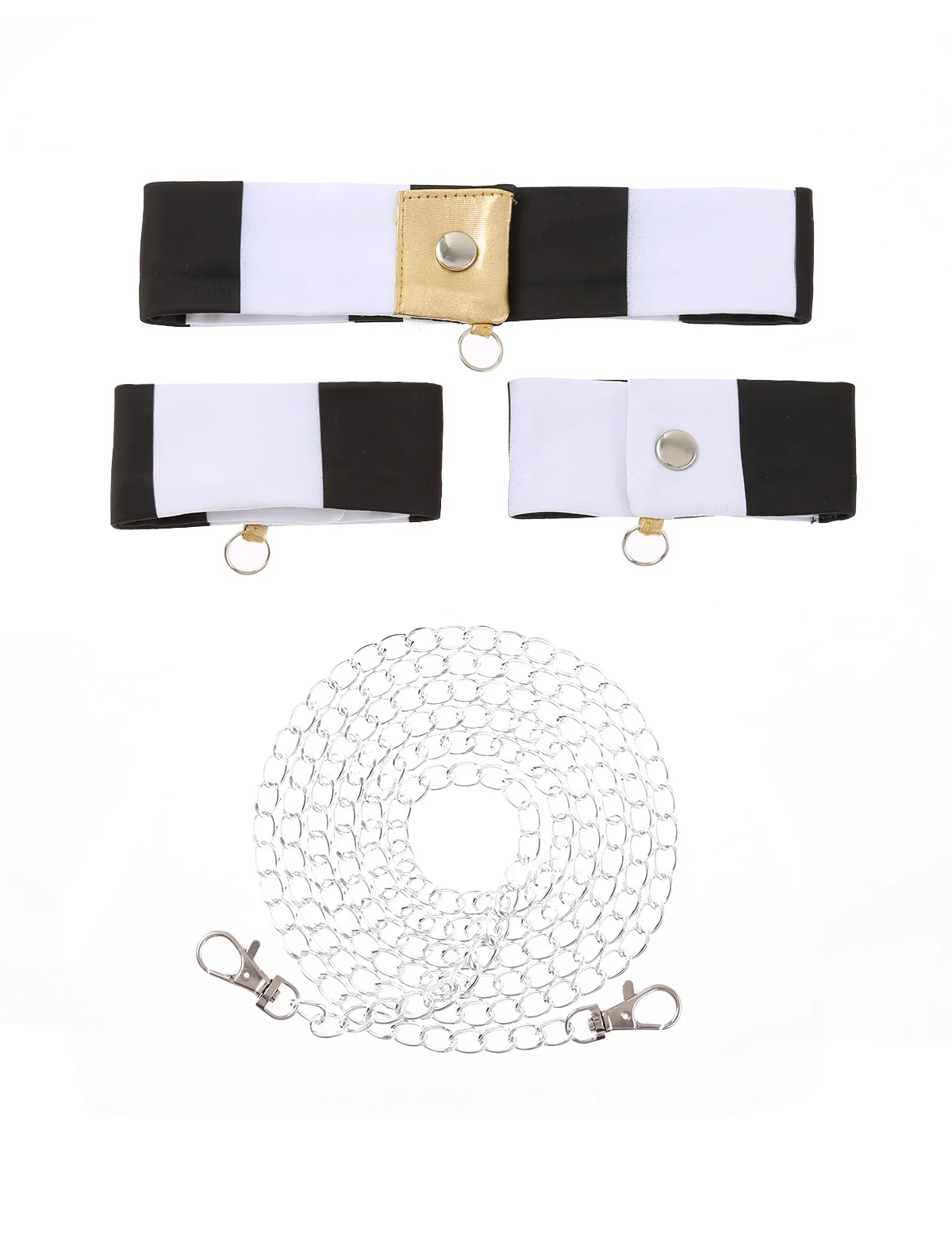 В комплект входит: 1 трусы-боксеры с подтяжками, 1 воротник, 1 манжетаСостояние: новый с биркойМатериал: полиэстер + нейлонЦвет: черный и белый (как показано на фотографии)