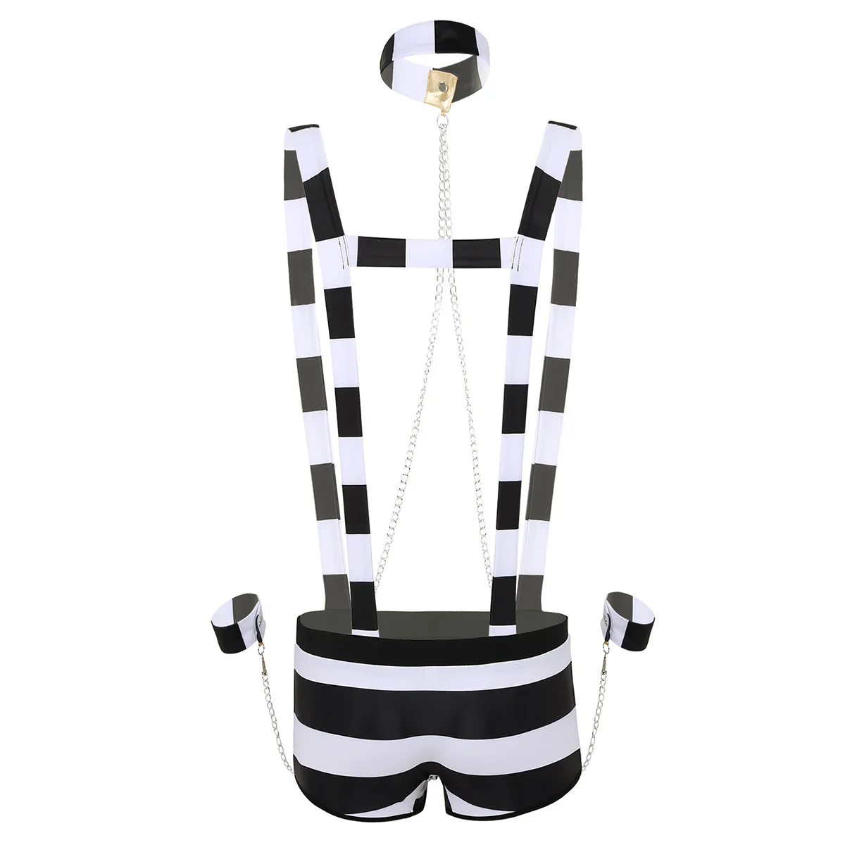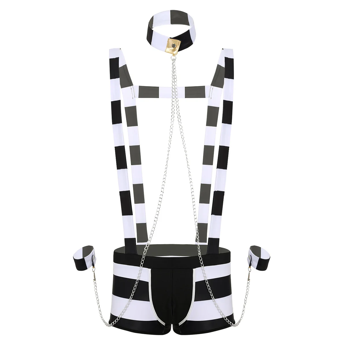 Костюм заключенного 4 шт. для мужчин и взрослых, комплект нижнего белья для ролевых игр на Хэллоуин, шорты-боксеры на бретелях с воротником-шляпой и браслетом