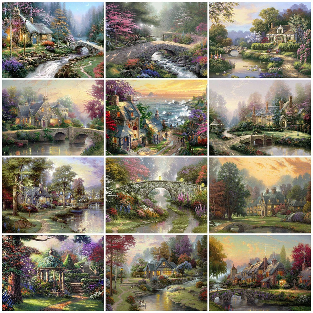 Красивый дом, алмазная роспись, круговое сверло, квадратные алмазны...