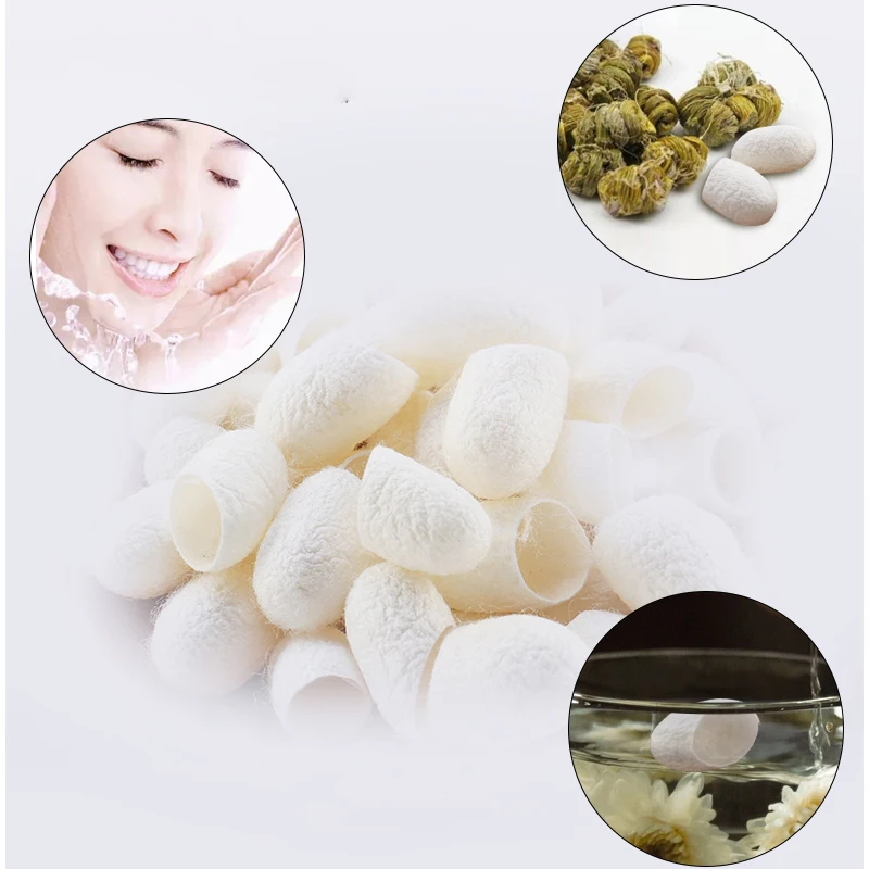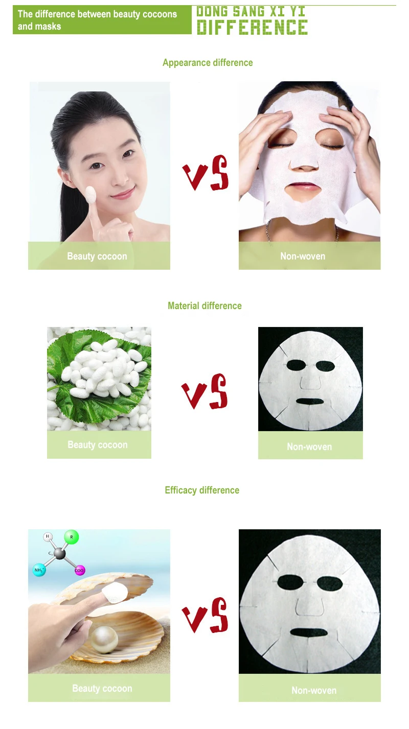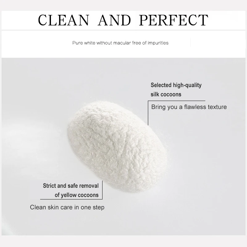 Особенности: шелк шелкопряда является самым известным природным материалом с белком, шелк может сделать кожу более красивой, гладкой, устраняет темные пятна кожи.