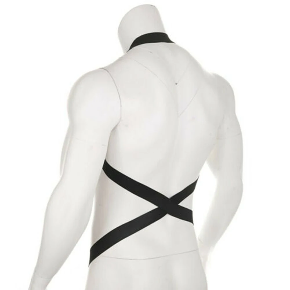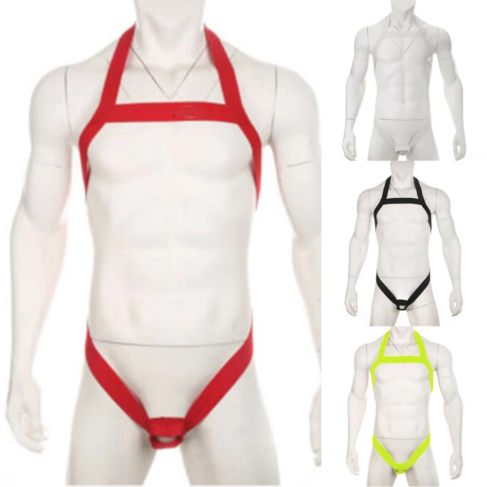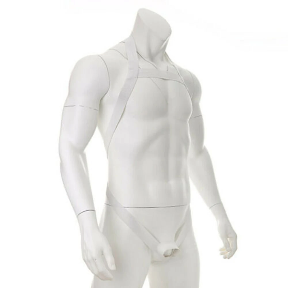 Мужской Эластичный бондаж с лямкой через шею, нагрудный ремень для тела Сексуальное нижнее белье, погоны с уплотнительным кольцом для пениса, Клубная одежда, сценический костюм для мужчин