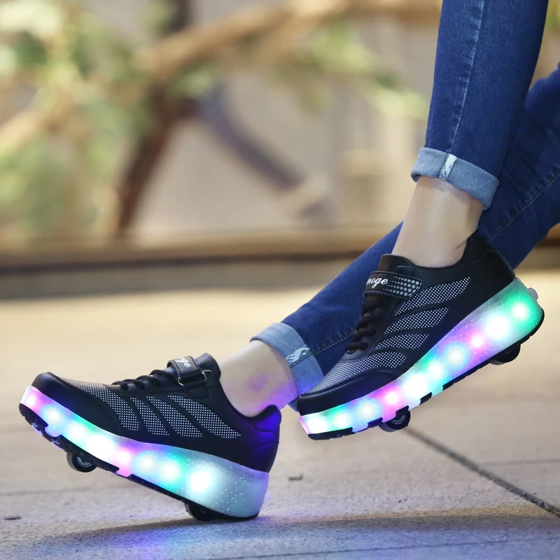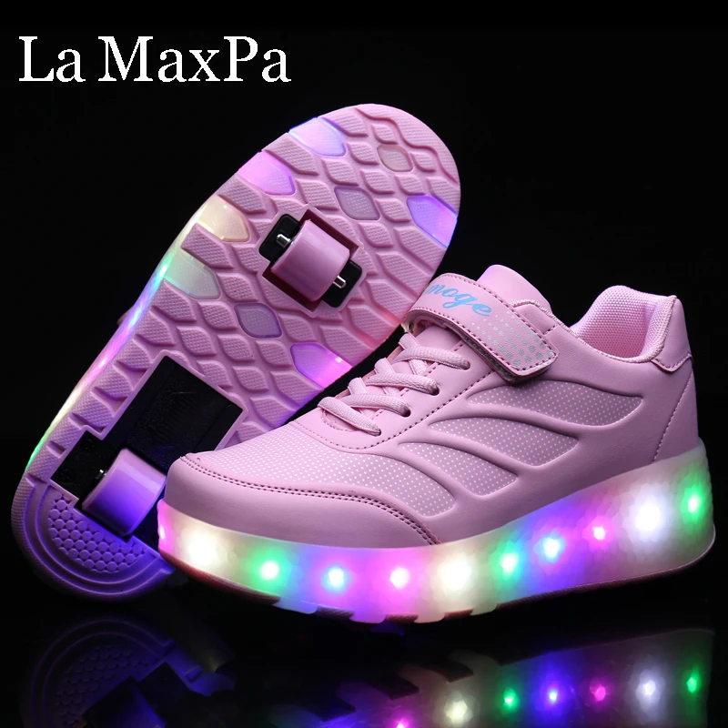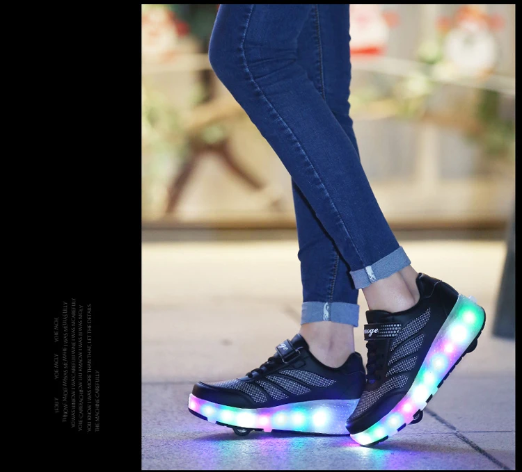 Светящиеся Детские кроссовки с двумя колесами, размеры 28-43