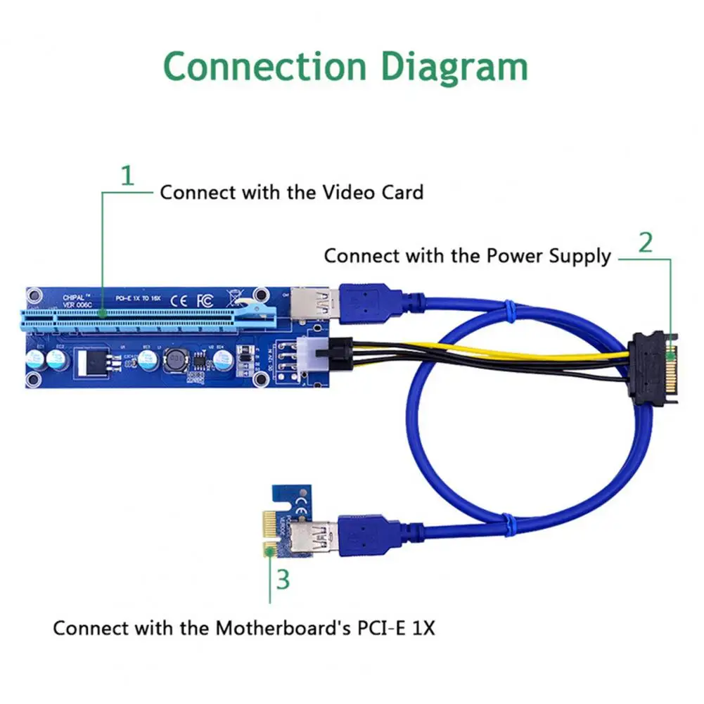 VER006C USB PCIE адаптер карты PCI-E 16X слот Райзер карта USB 3,0 PCI-E 1X до 16X Экспресс Райзер карта Удлинительный кабель для майнинга
