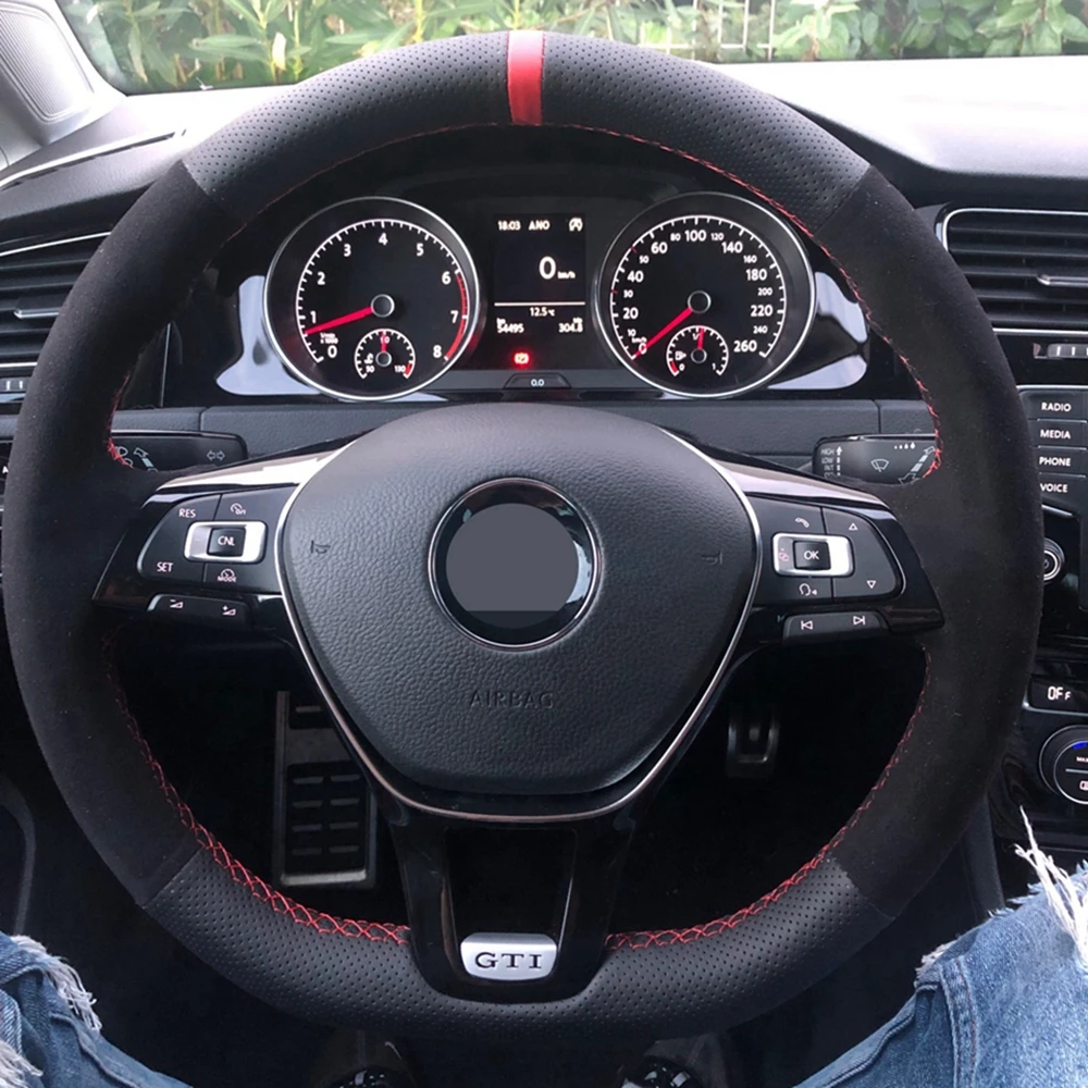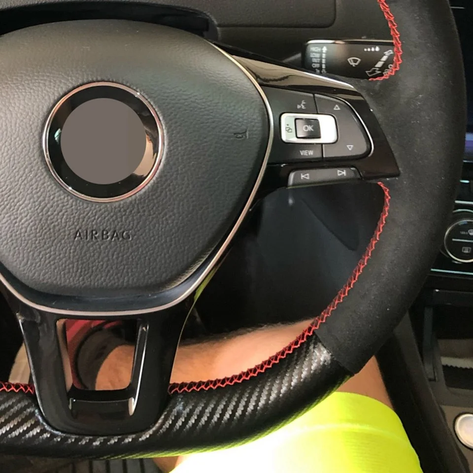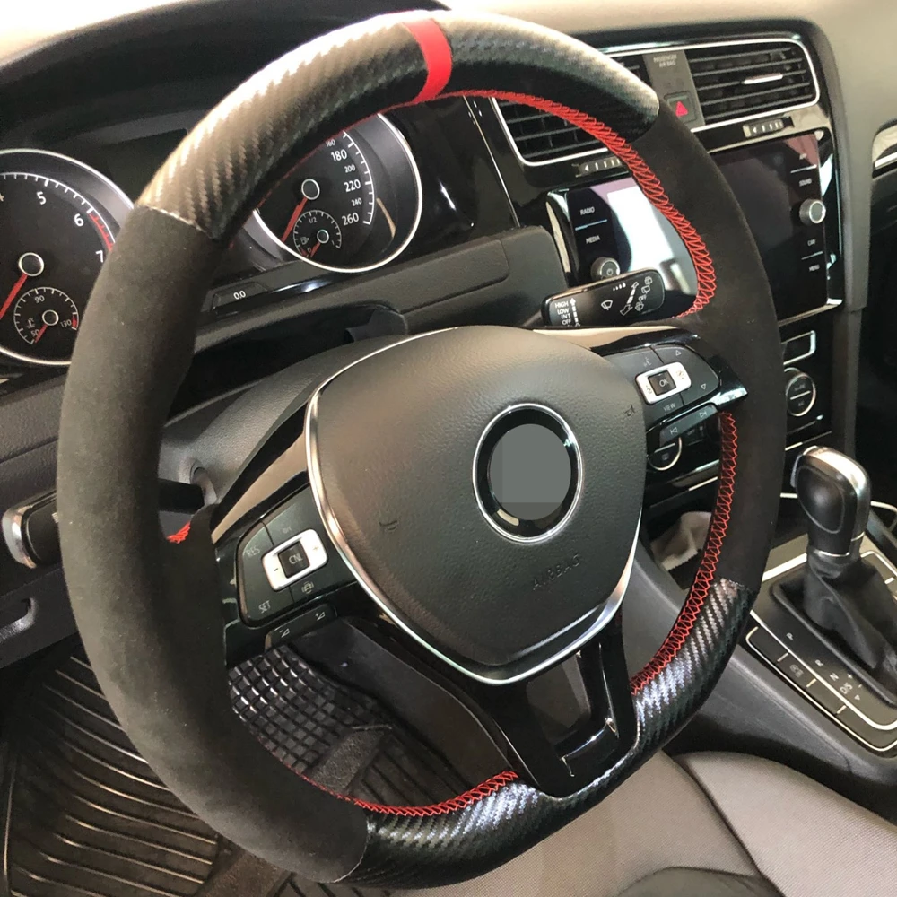 Нескользящая черная оплетка из углеродного волокна и замши чехол рулевого колеса автомобиля для Volkswagen Vw Golf 7 Mk7 Nieuwe Polo jetta Passat B8