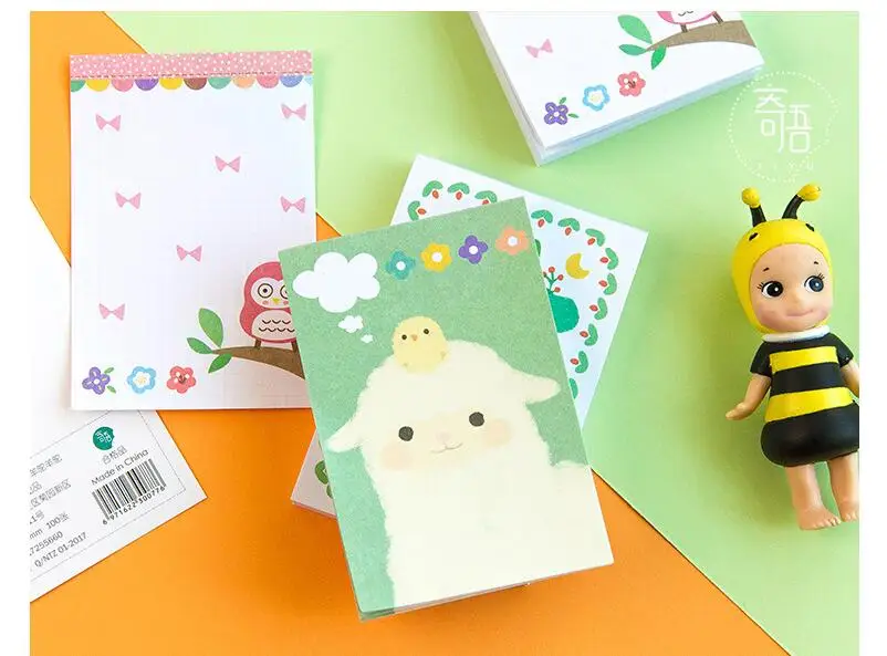 100 листов, портативные блокноты для записей в виде совы, клубники, цветов