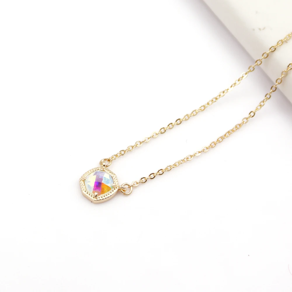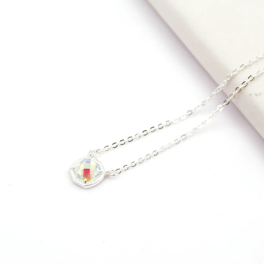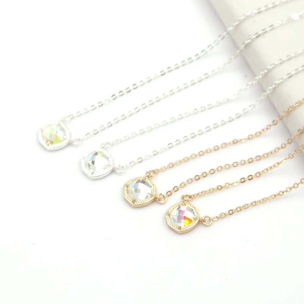 Женское колье с кристаллом AB, 5 цветов, подвеска-шестиугольник