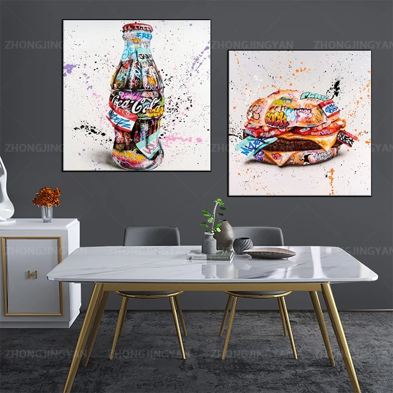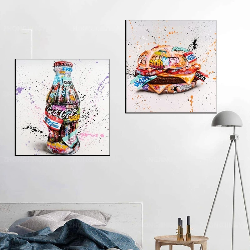 Современный художественный постер с принтом гамбургеров и граффити, уличный гамбургер, граффити, Картина на холсте для гостиной, домашний декор