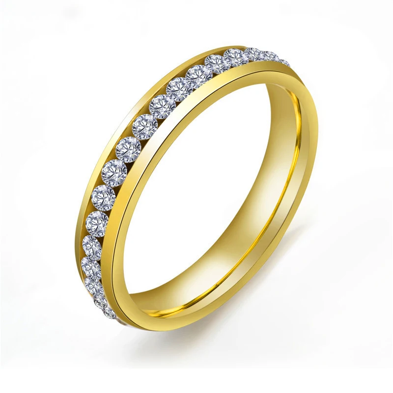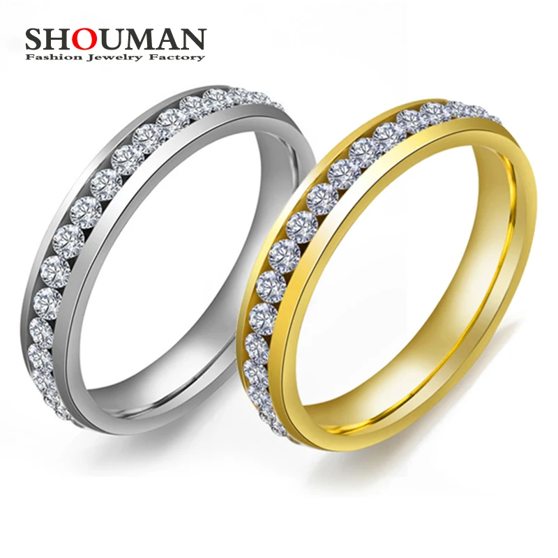 Роскошные классические кольца SHOUMAN 4 мм из нержавеющей стали с инкрустацией стразами, золотые кольца для женщин и девушек, обручальное кольцо, очаровательное, для вечеринки, подарок