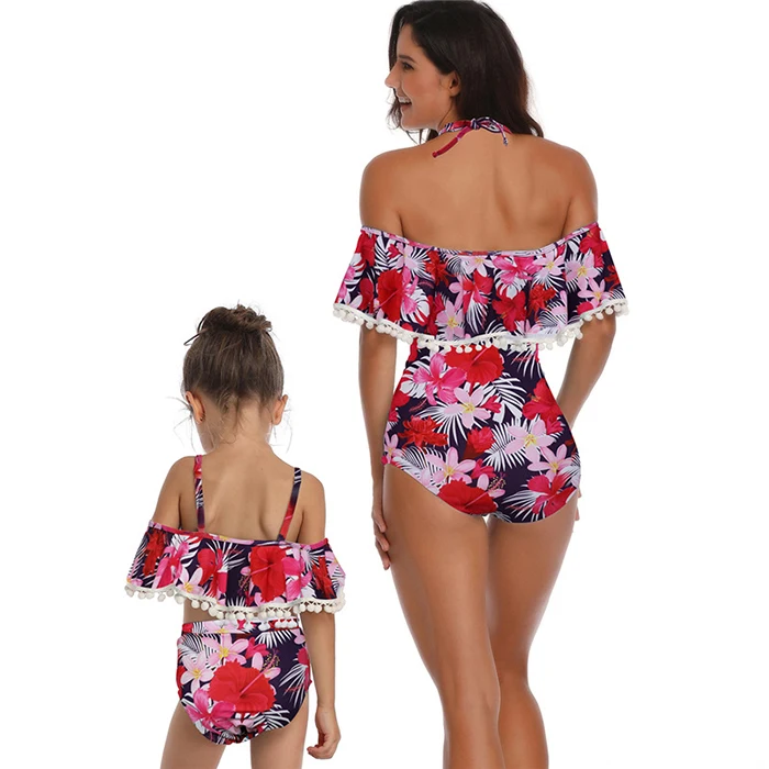 Слитный купальник для мамы и дочки, комплект бикини, лето 2021