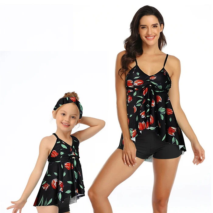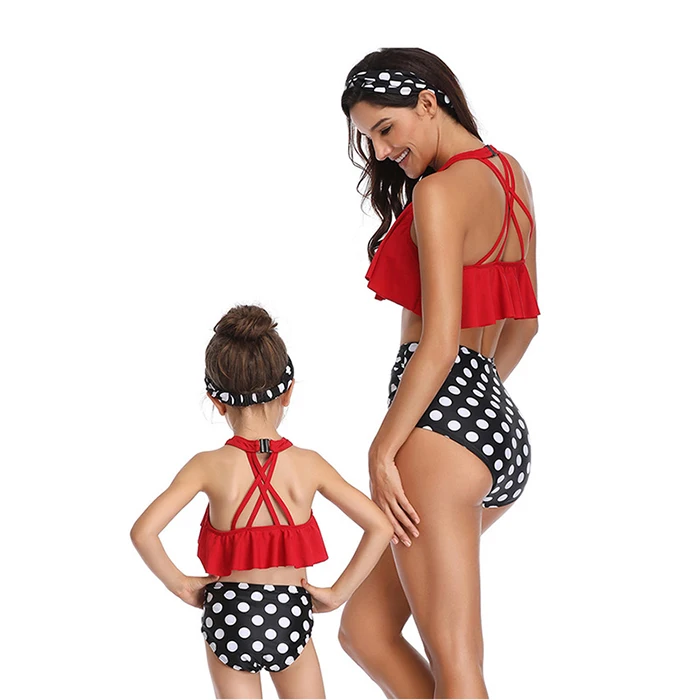 Новинка 2021, купальники для мамы и дочки, черный купальный костюм ...