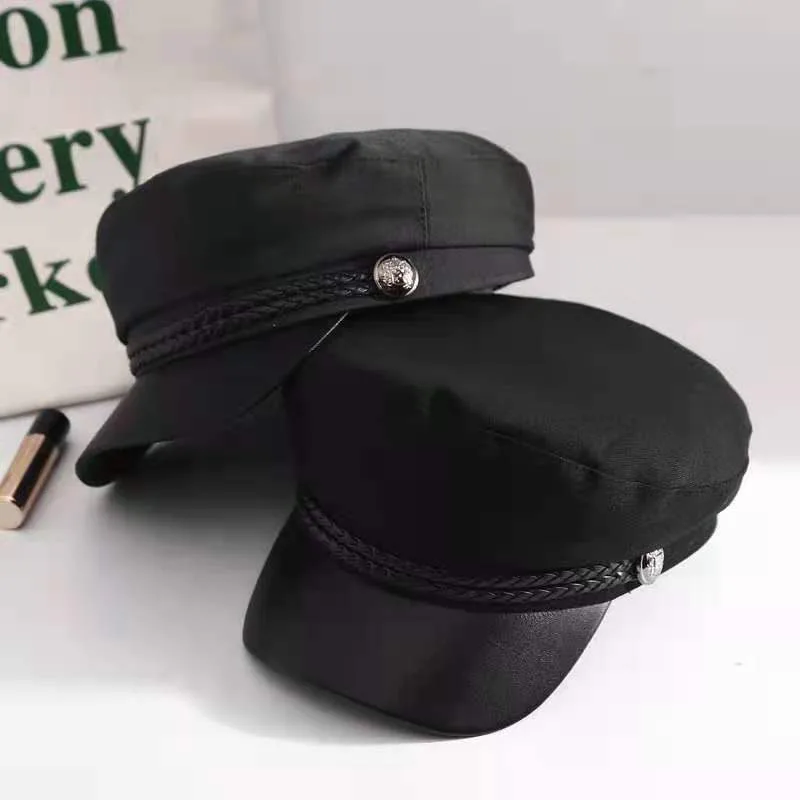 DT044 модная женская мужская военная шапка демисезонные матросские шапки черные женские береты кепки с плоским верхом Кепка Капитана дорожная шапка Кадета