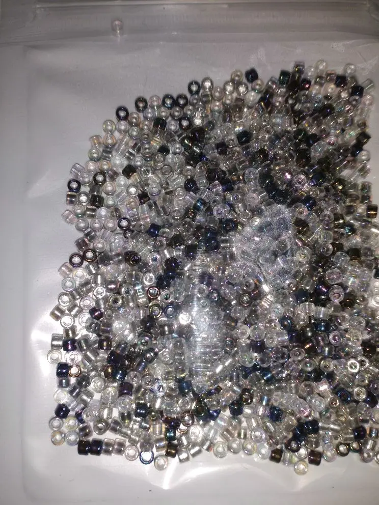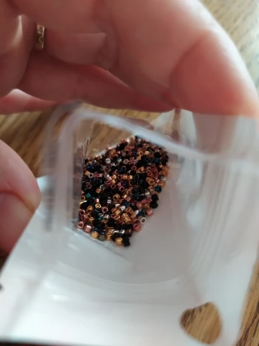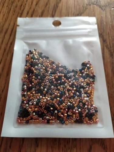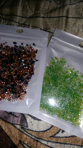 Хороший бисер, цветовое сочетание очень классное, 3 цвета с металлическим блеском, есть прозрачный голографик. Немного отличаются по длине, не идеально одинаковые, сколов нет.