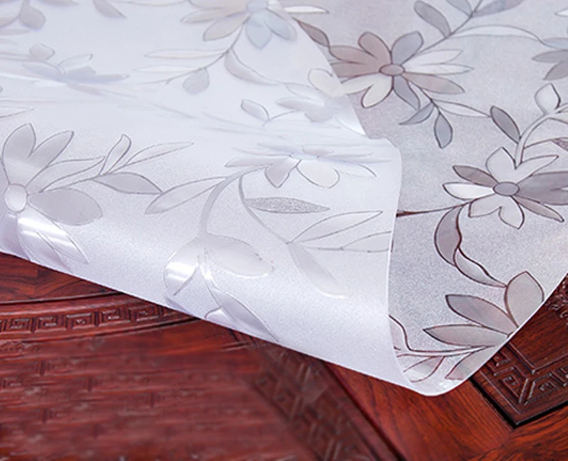 Feito deMacio e duravelplado PVC vinil com hot-prensado em um rolo. Esta clara tampa de tabela PVC é duravel, à prova d' agua, óleo-resistente.