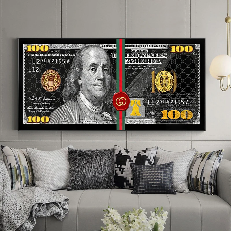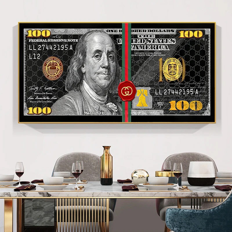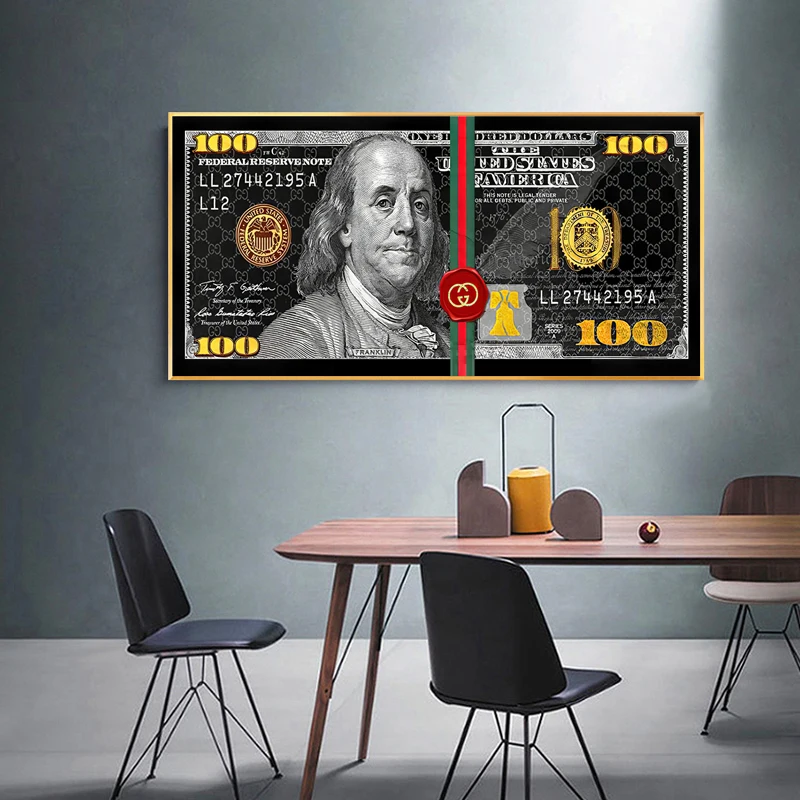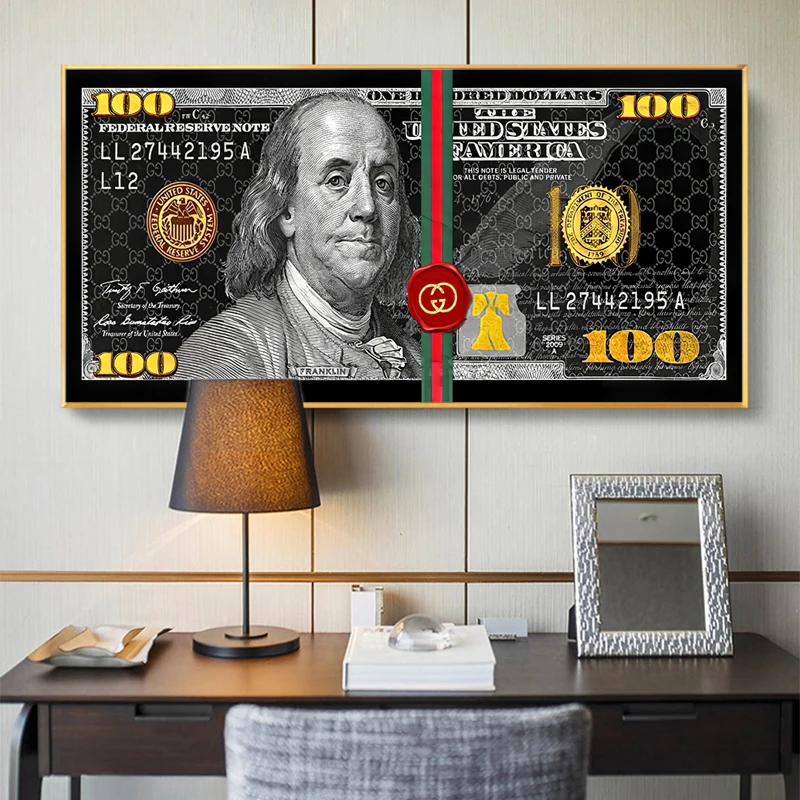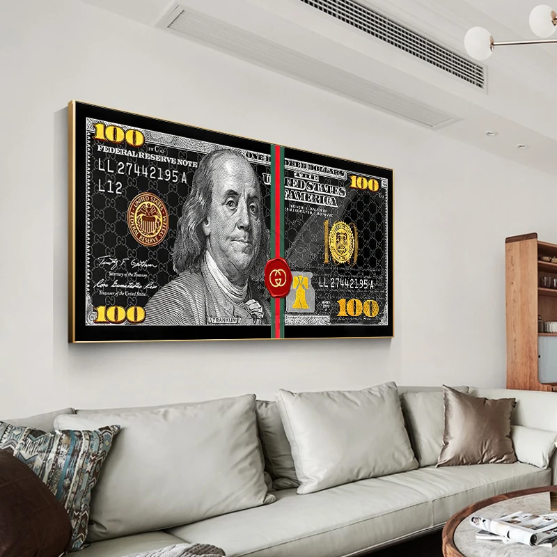 100, цена в долларах, черный и золотой деньги отпечатки на холсте офис Декор настенная живопись мотивационный постер изображение домашний декор