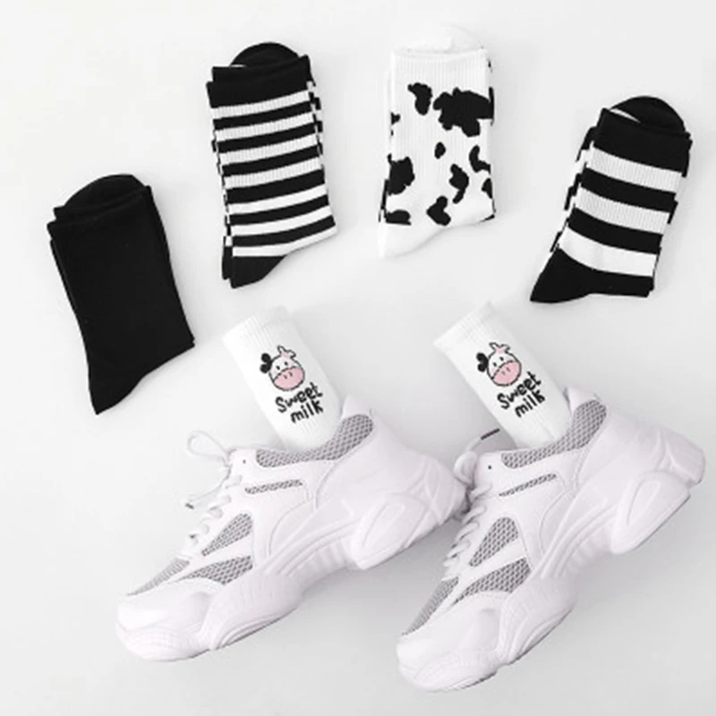Женские носки Харадзюку милые носки до середины икры носки с принтом коровы модные спортивные носки для экипажа милые