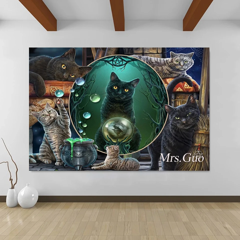 Алмазная живопись, Черный кот, полный квадраткруглый 5D, алмазная вышивка сделай сам, распродажа, стразы, узоры животных, украшение для дома