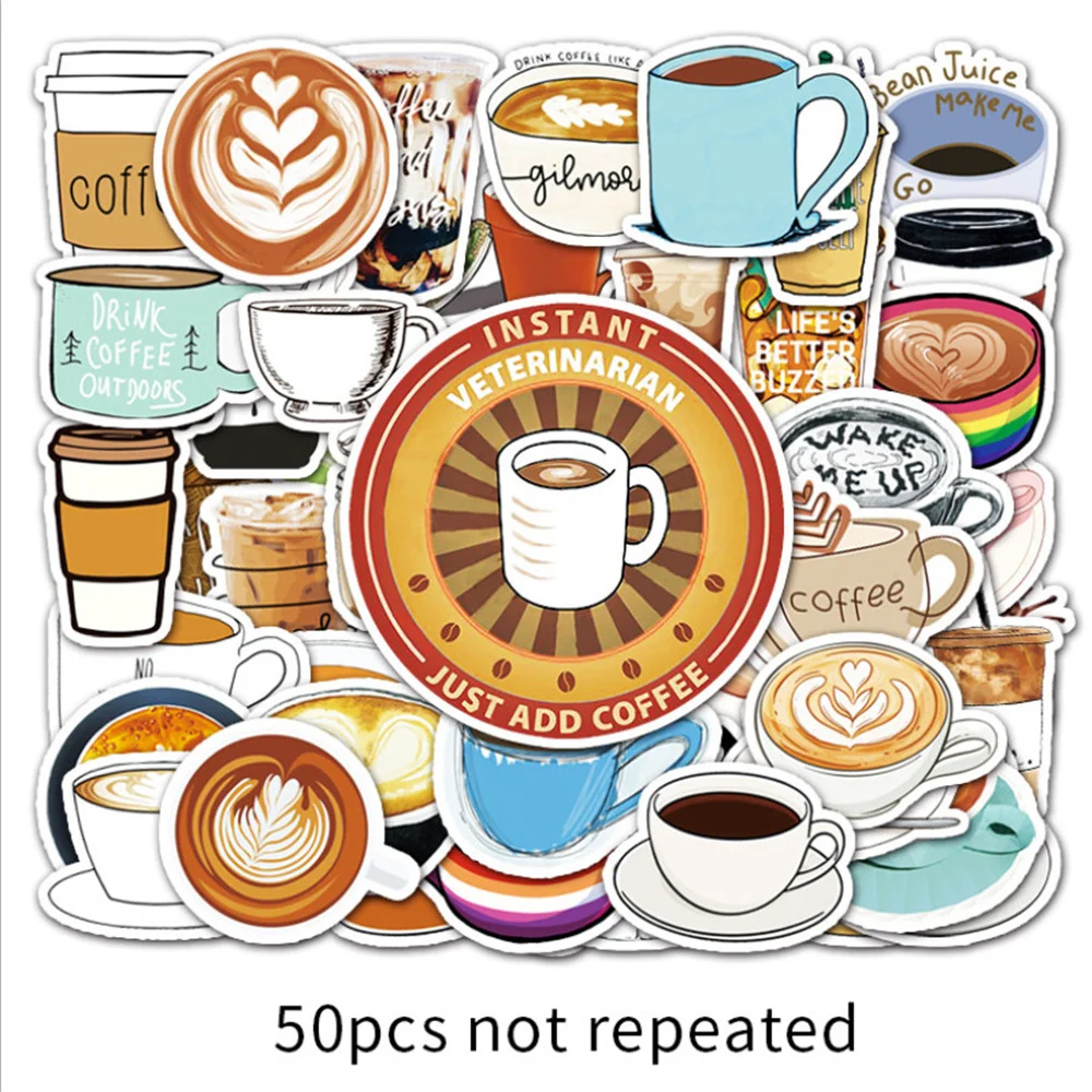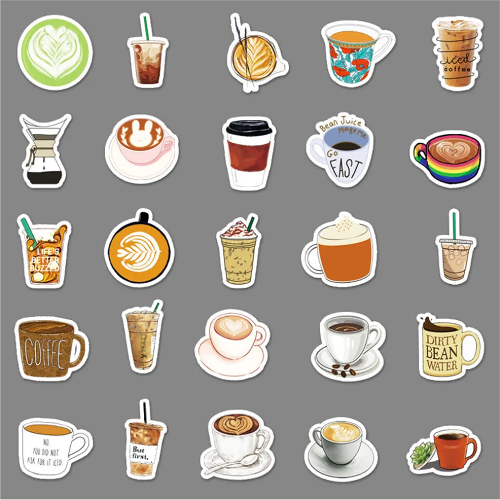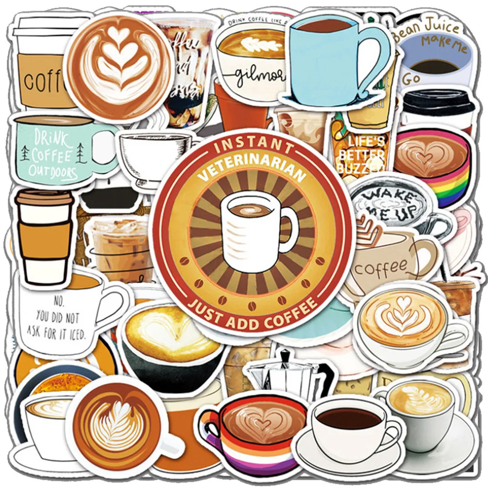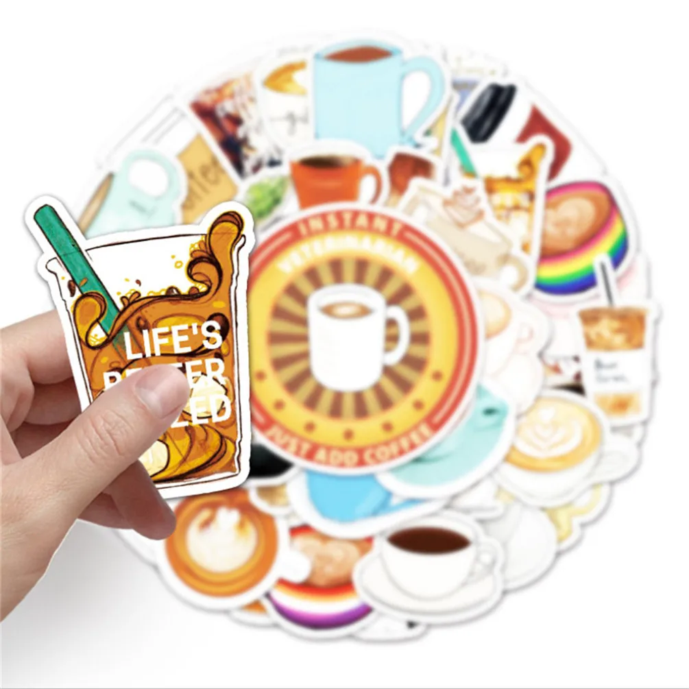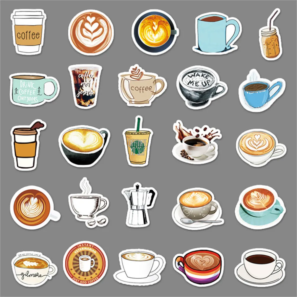 103050 шт в наборе, носки с креативным мультяшным кофе с ручным принтом граффити; Стильная учетной записи чемодан скейтборд украшения Водонепроницаемый вырезать наклейки игрушки оптовая продажа
