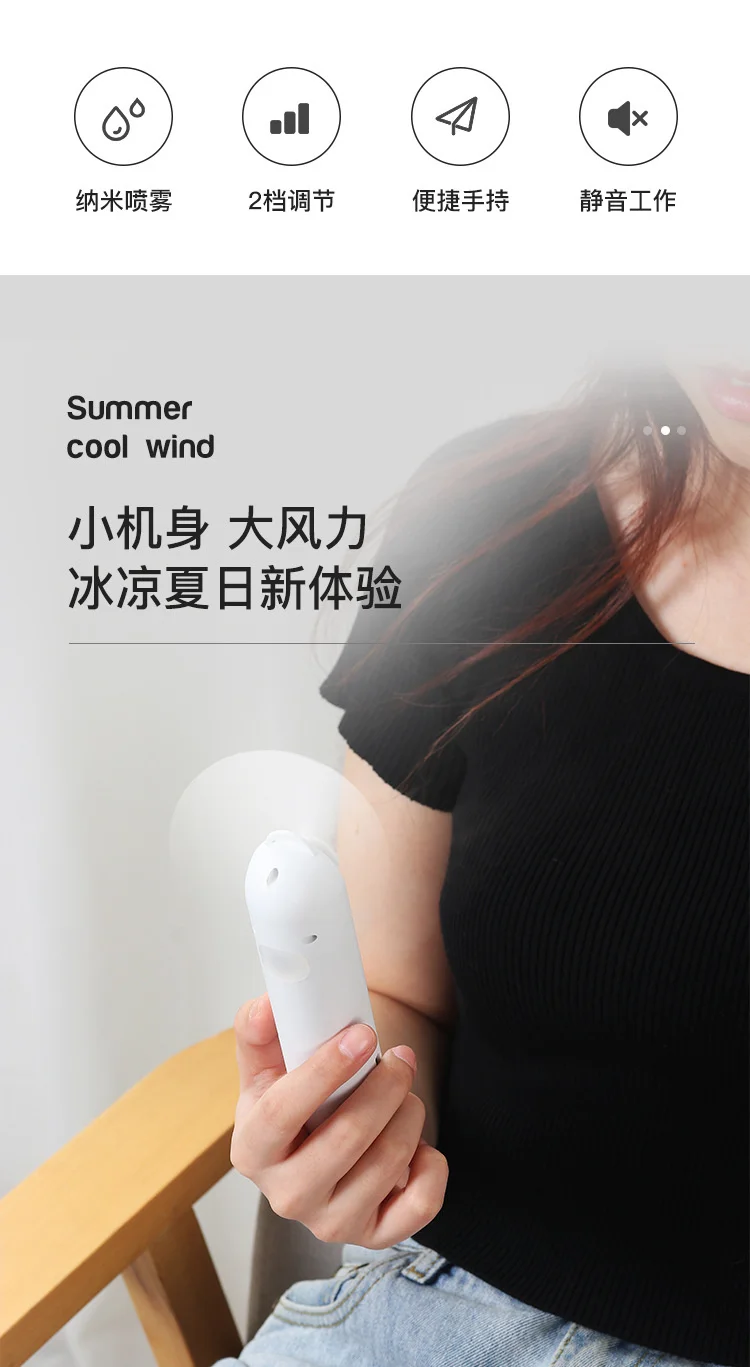 Многофункциональный Нано-вентилятор 144,5*35,5 мм, устройство для пополнения воды, портативный USB-вентилятор для увлажнения двух рук