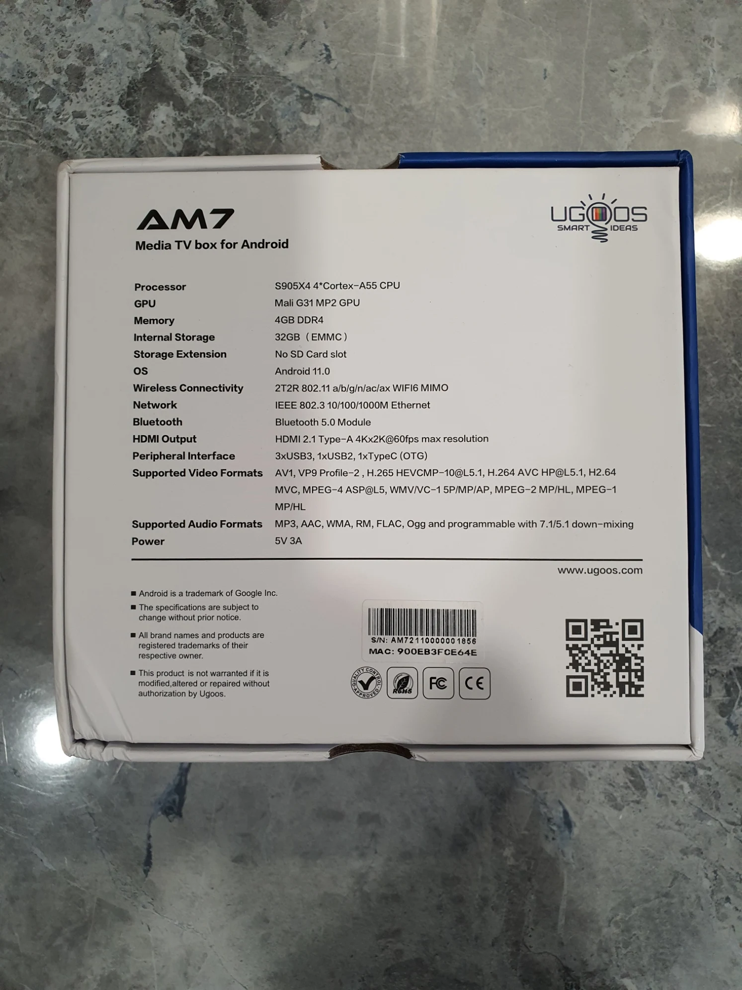 ТВ-приставка UGOOS AM7 на Android 11, Amlogic S905X4 DDR4, 4 + 32 Гб, поддержка AV1 CEC HDR WiFi6 2021 M BT5.0 4K