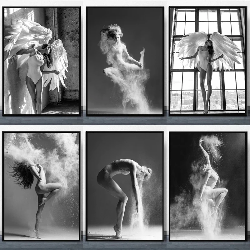Белые и черные ретро крылья домашний декор холст картины постеры и ...