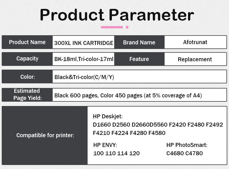 Переработанный цветной чернильный картридж Afotrunat для HP 300, замена для HP 300 XL Deskjet F2420 F2480 F2492 F4210 D1660D2560