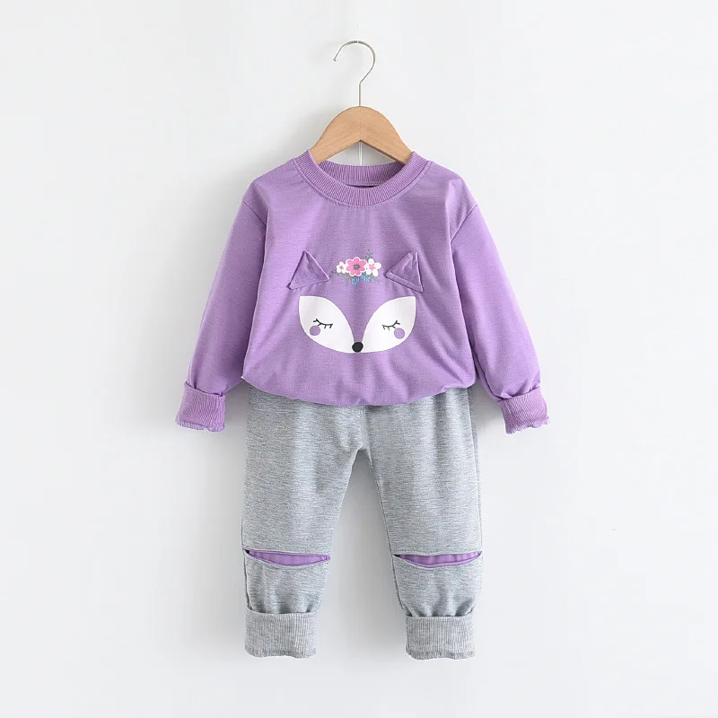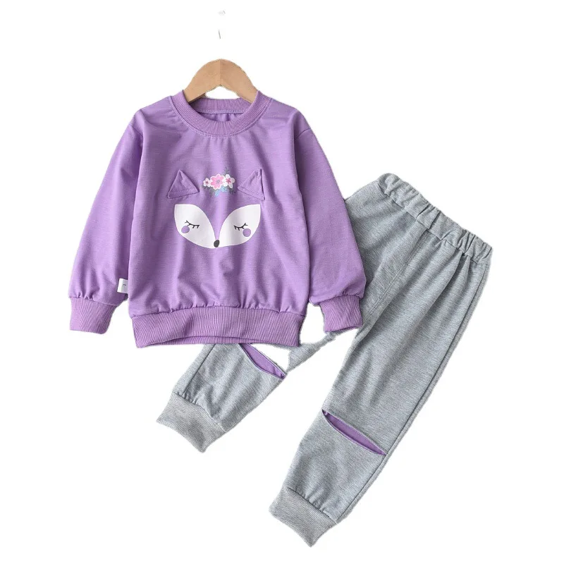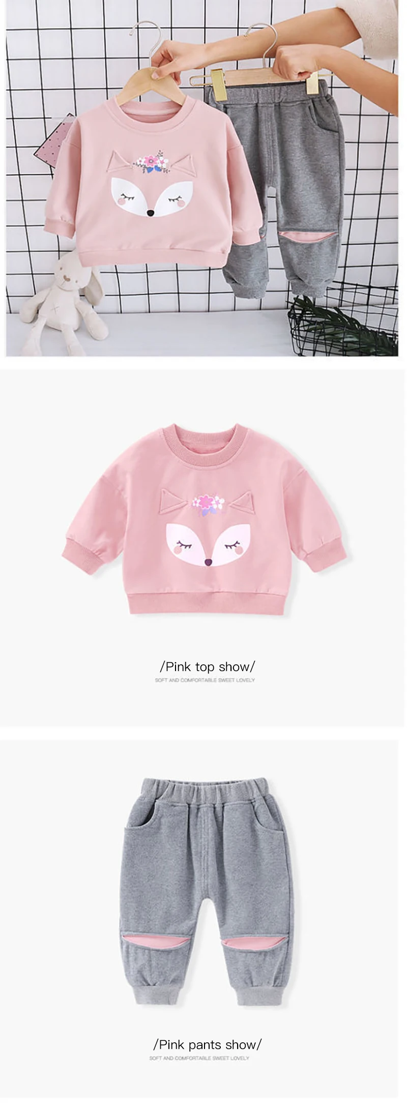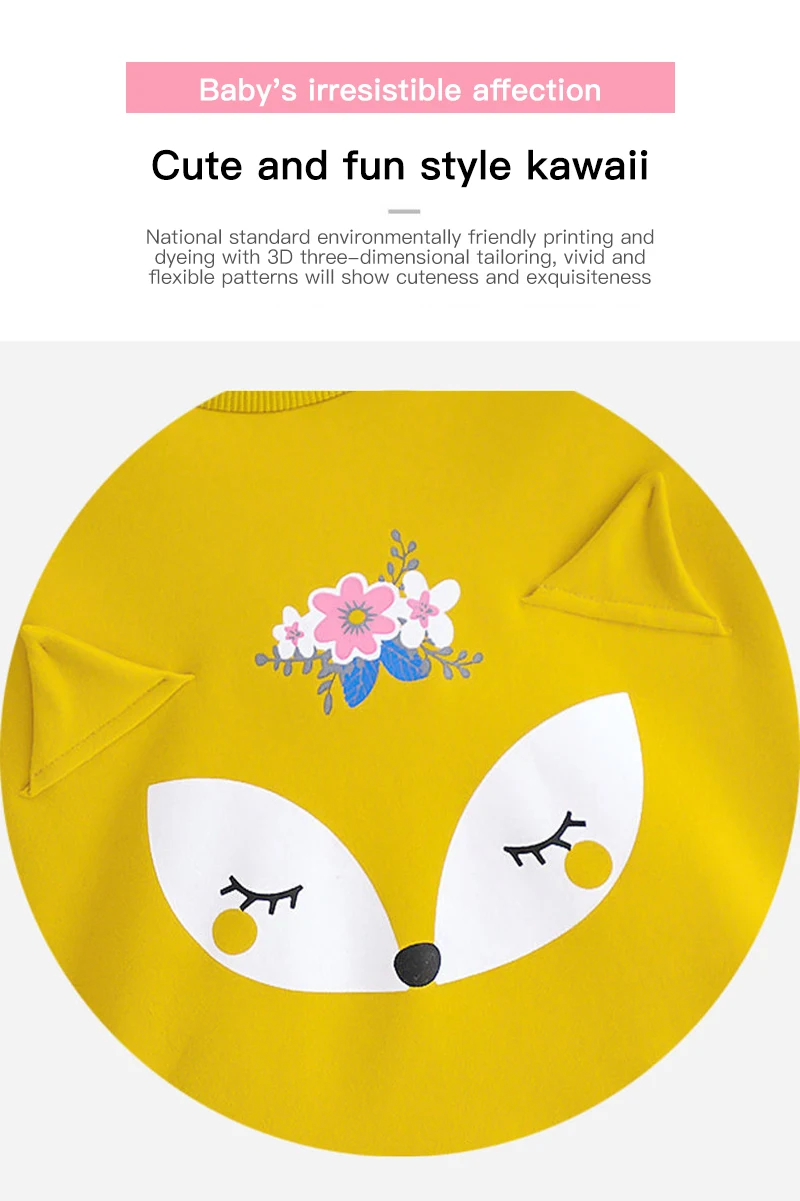 Для девочек; Осенняя одежда с рисунком лисы; Бархатный пуловер с высоким воротником для девочек, костюм для девочек, для малышей и детей постарше толстовка с брюками, костюм модный милый Спортивный Повседневный костюм, партиями