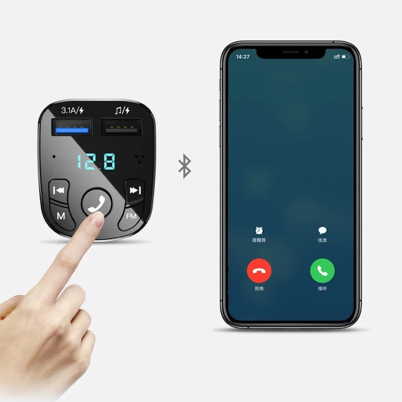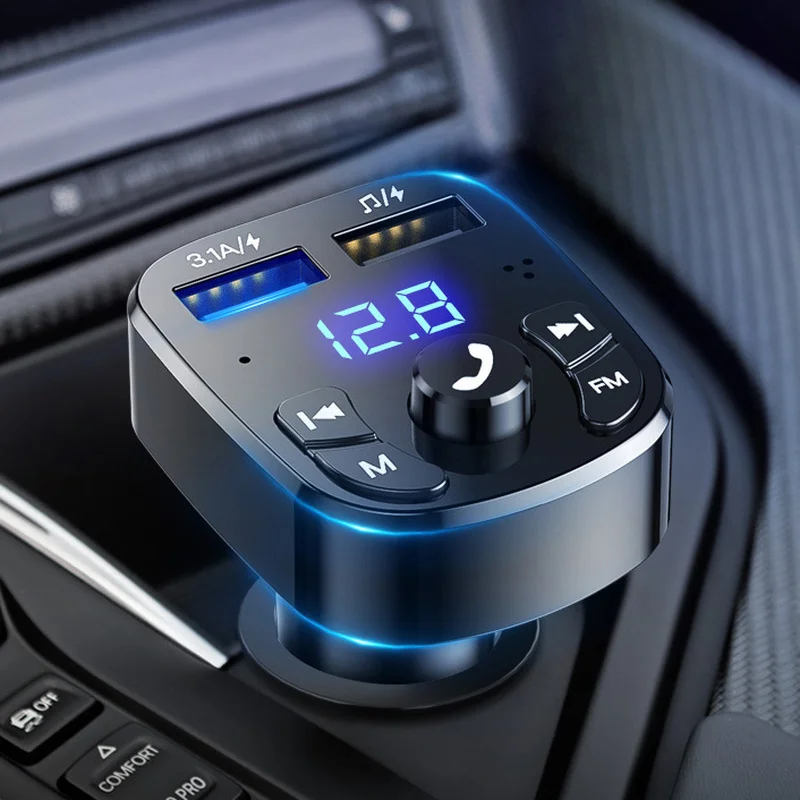 Автомобильный FM-передатчик Bluetooth 5,0 с дисплеем, быстрое зарядное устройство с двумя USB-портами, автомобильный аудиоплеер 1224 в