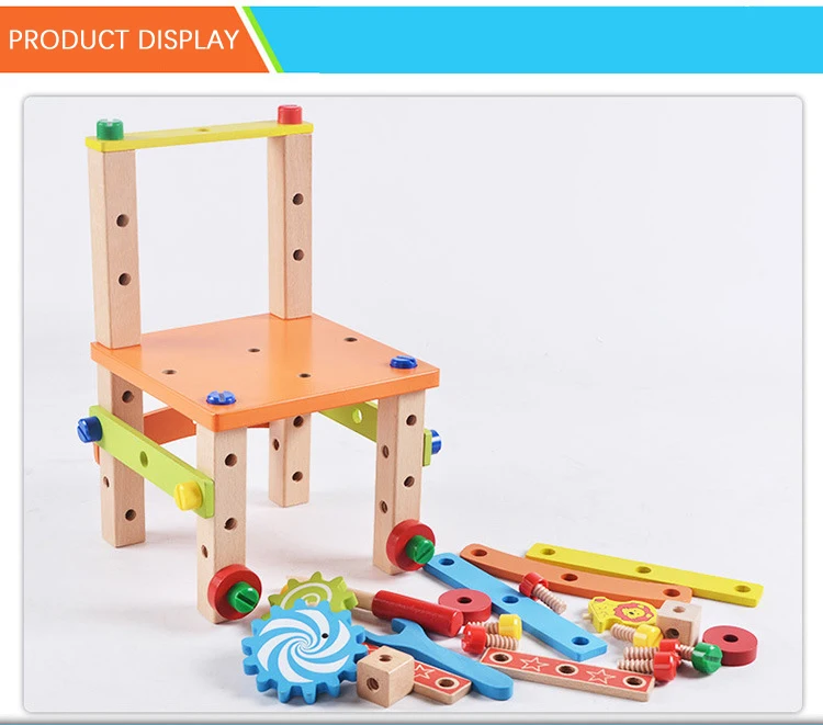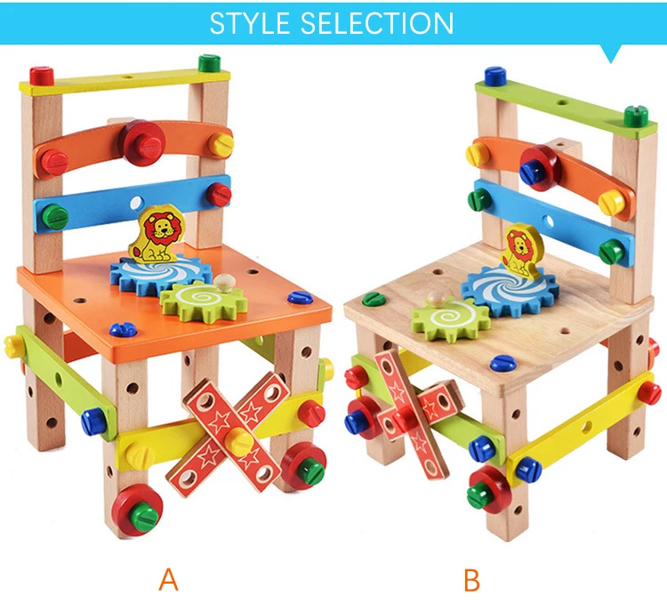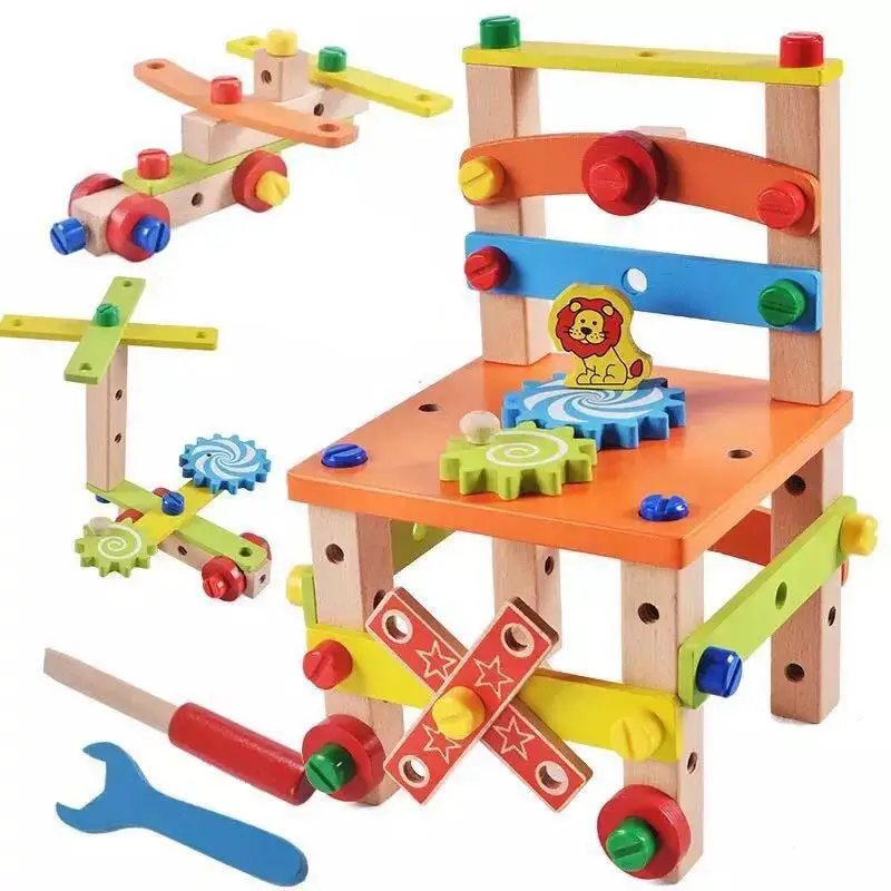 Деревянный стул для сборки, инструмент Монтессори, образовательный Дошкольный Многофункциональный ассортимент гаек, комбинированный стул, разборка, детская игрушка