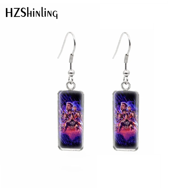 Мстители Картины героев прямоугольный крюк висячие серьги в виде капель с Стекло кабошон уха ювелирных изделий