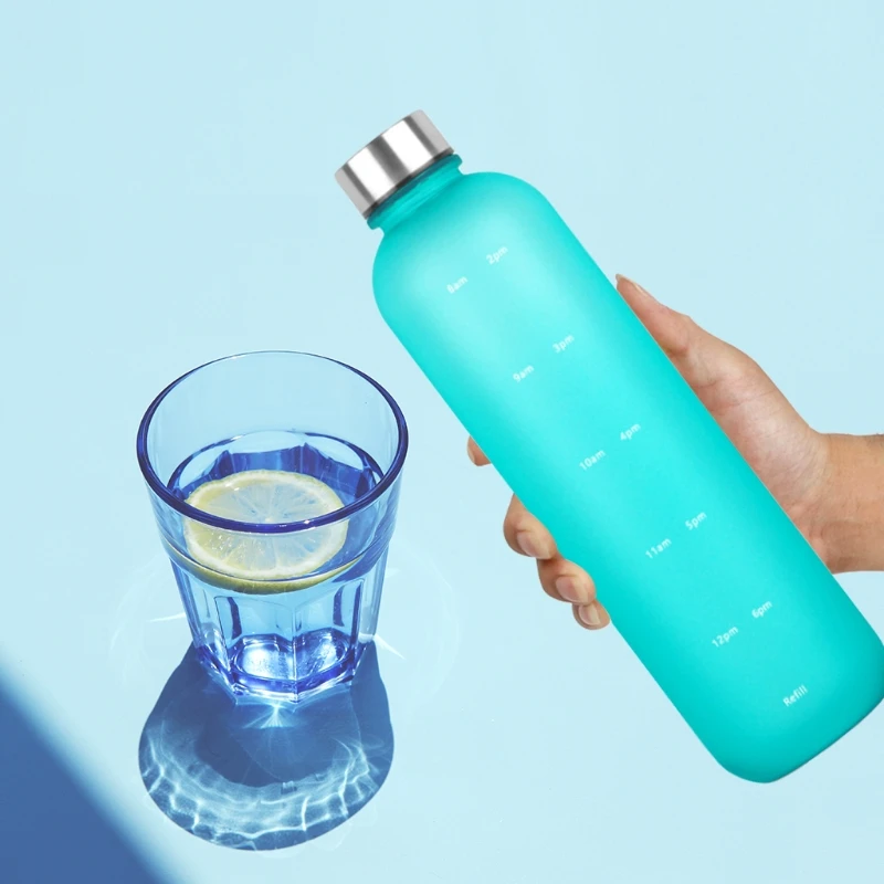 Пластиковая бутылка для воды, 1 литр, герметичная бутылка для воды, не содержит Бисфенол А, Спортивная бутылка с метками времени, три цвета на выбор, 1 шт.