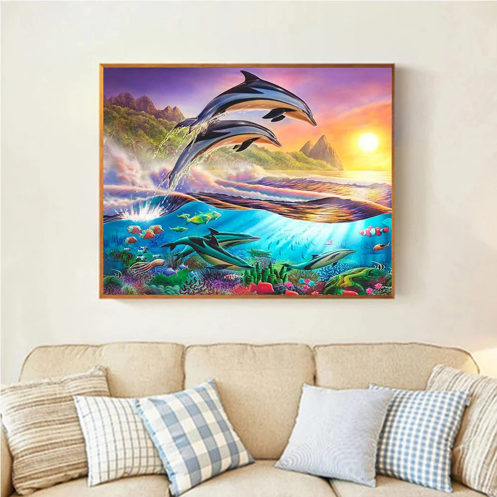 HUACAN 5d алмазная живопись новые поступления животные Алмазная вышивка, дельфин фотографии Стразы Мозаика Декор для дома