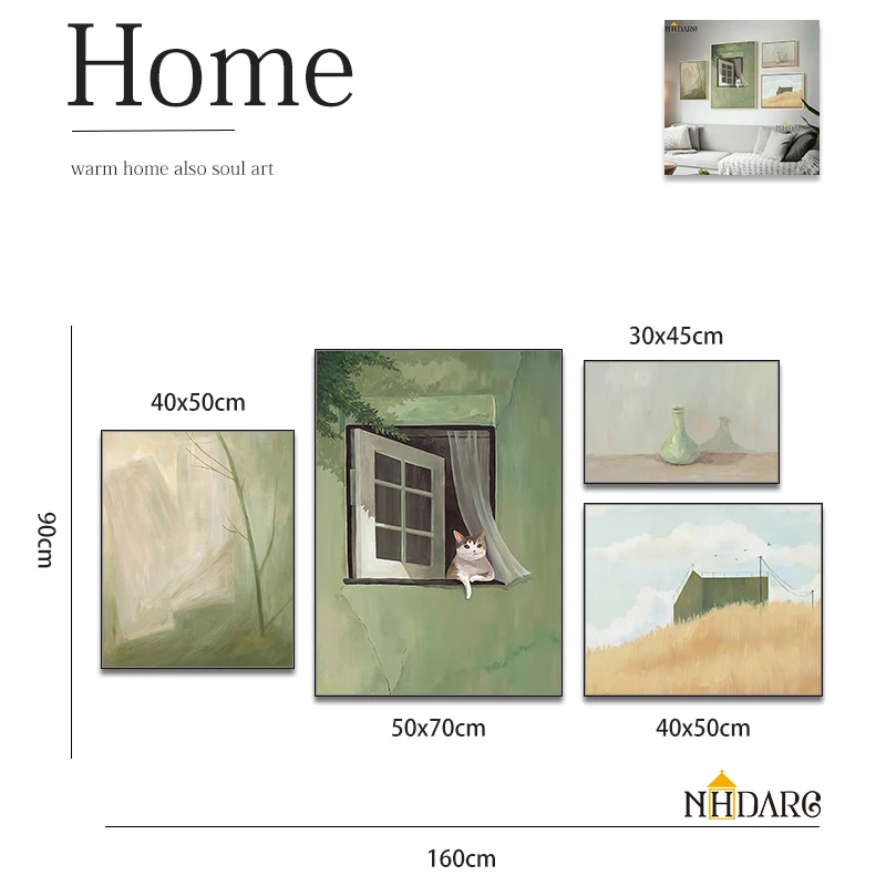 Постер на холсте с изображением зелёного природного пейзажа, окно, кошка, животное, Картина на холсте, Настенная картина для гостиной, домашний декор