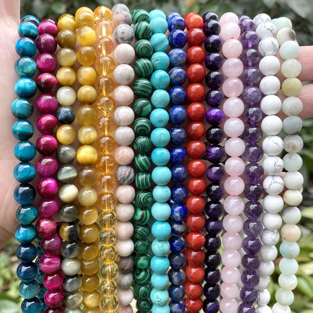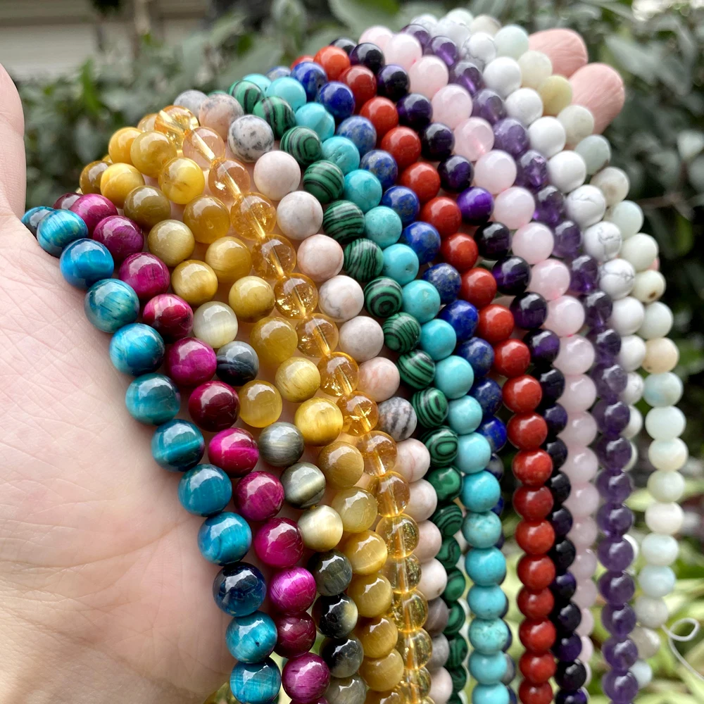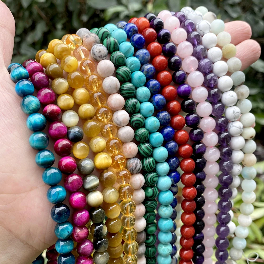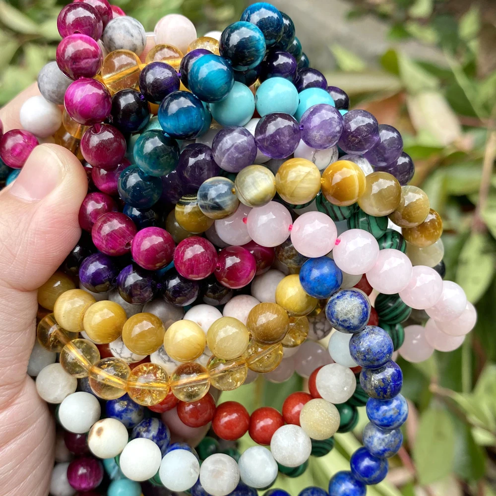 Из круглого натурального камня тигровый глаз, бирюзы, лабрадорит, гематит, нефрит, Агаты, разделительные бусины, искусственный браслет